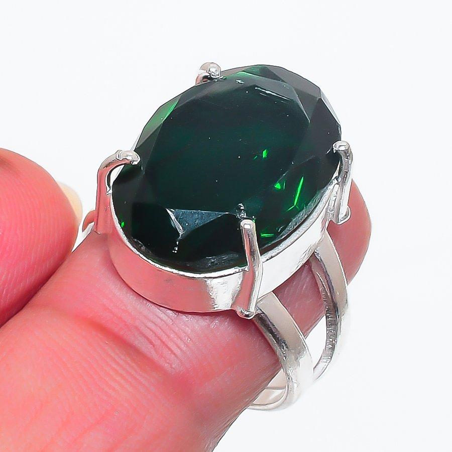 Хромовый диопсид Ручной работы Ювелирное изделие Кольцо из стерлингового серебра 925 пробы Размер 7.5 P9b98