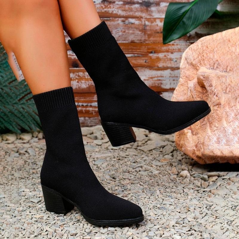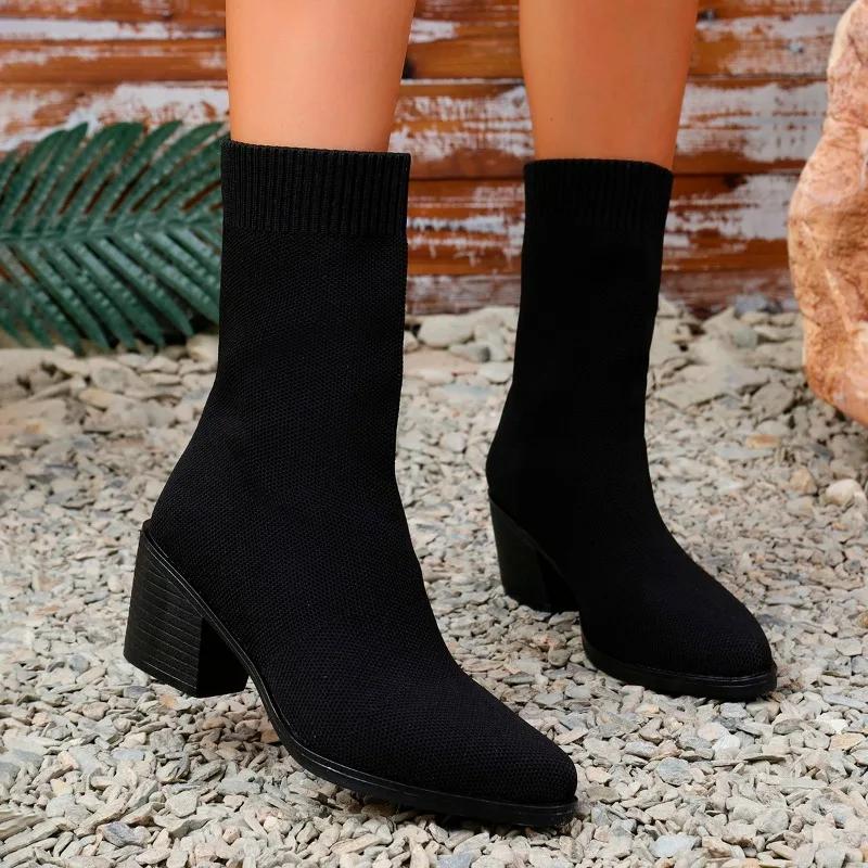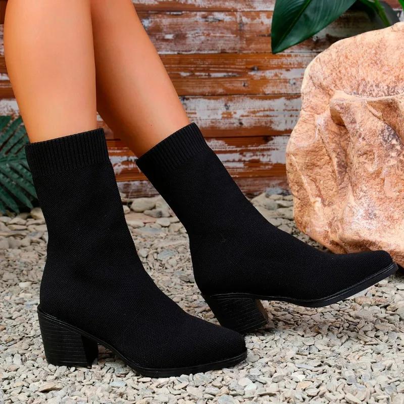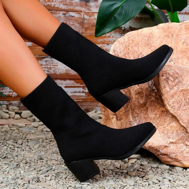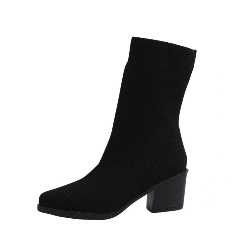 2024 Высококачественная обувь для женщин, женские сапоги без застежек, модные современные сапоги из эластичной ткани, женские новые сапоги до середины икры больших размеров