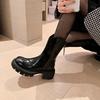 Женская обувь 2024 Высокое качество Молния Женские ботинки Зимние теплые Круглый носок Однотонные Средняя голень Массивный каблук Модные ботинки