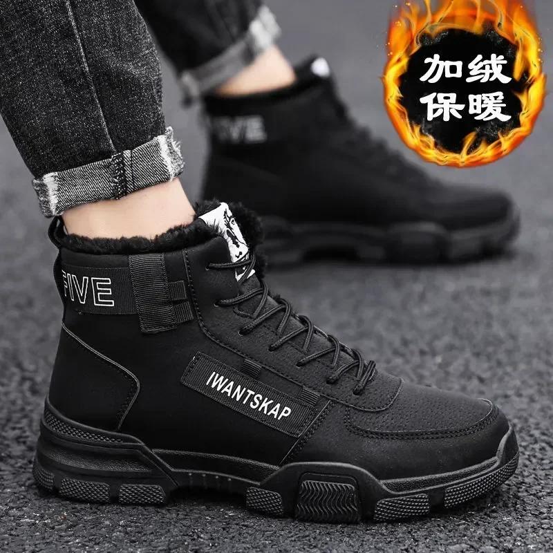 Мужские ботильоны, зимние теплые ботинки на шнуровке, модная обувь из флока с плюшем, зимние ботинки, мужская обувь большого размера, цвет хаки PU517