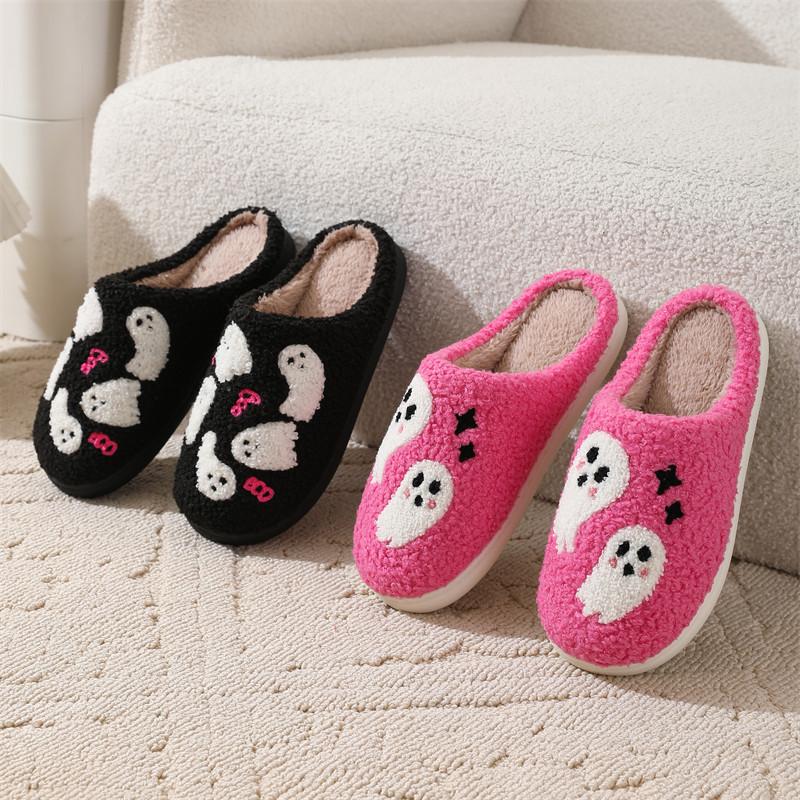 2024 Хэллоуин забавные тапочки вышивка призрак теплые зимние хлопковые тапочки мужские и женские парные нескользящие домашние тапочки для дома