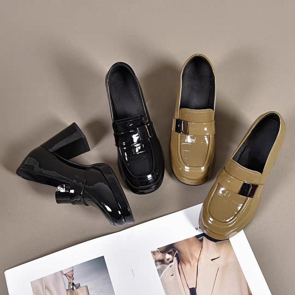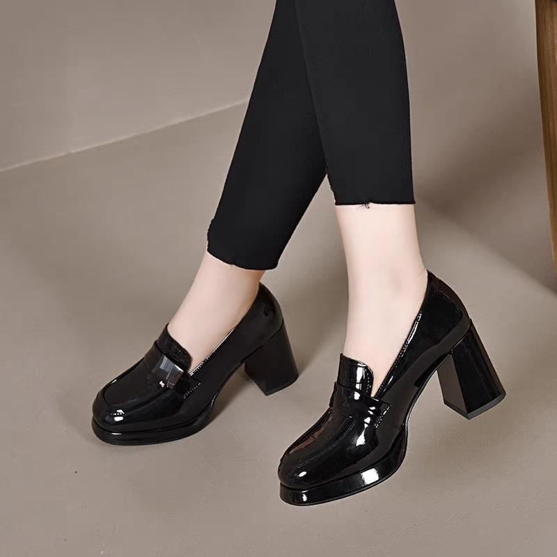 2024 Модная женская обувь Модная весна-осень Женская обувь на высоком каблуке с круглым носком Толстые каблуки Лакированные женские туфли-лодочки Zapatos Muje