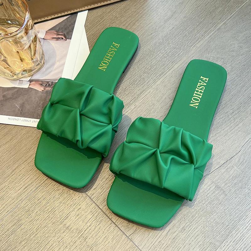 Летние уличные тапочки на плоской подошве для женщин 2024 года, новые повседневные шлепанцы с квадратным носком для отдыха, вечерние, сексуальные, элегантные, офисные, женские, новые туфли
