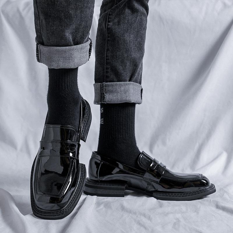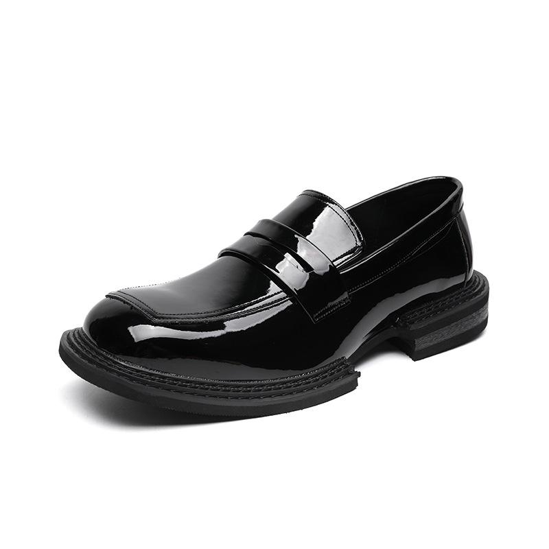 Мужские деловые повседневные туфли Oxford из искусственной кожи с квадратным носком, корейские уличные модные мужские кожаные туфли-лоферы для свадебного платья