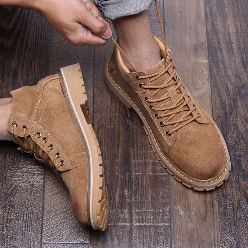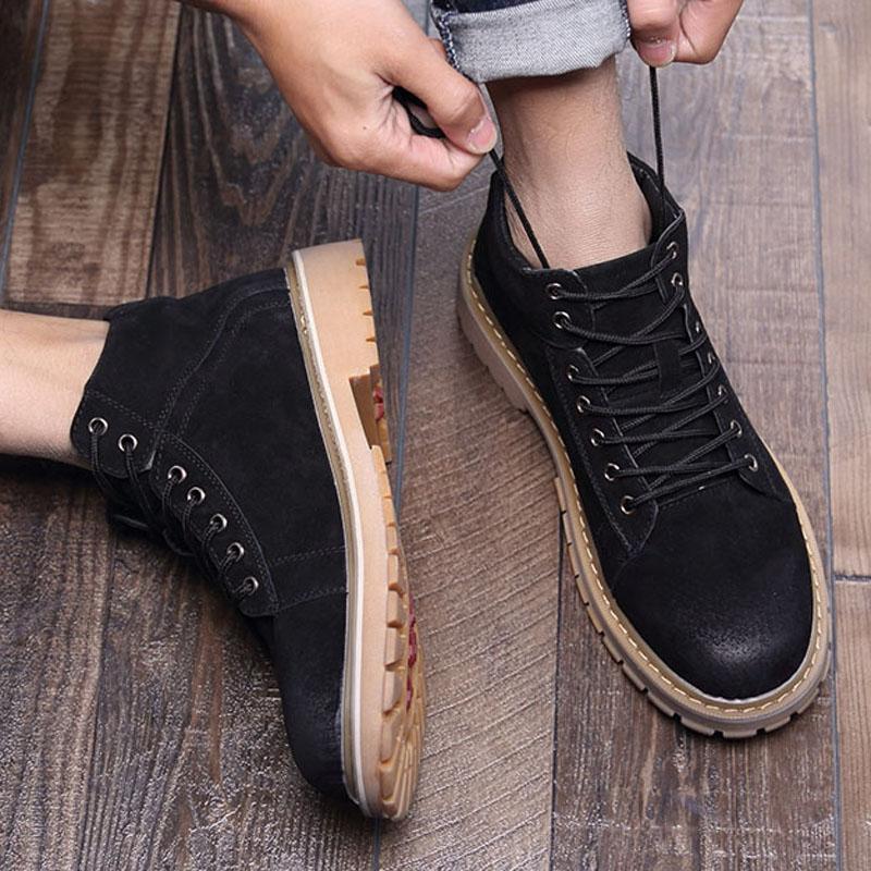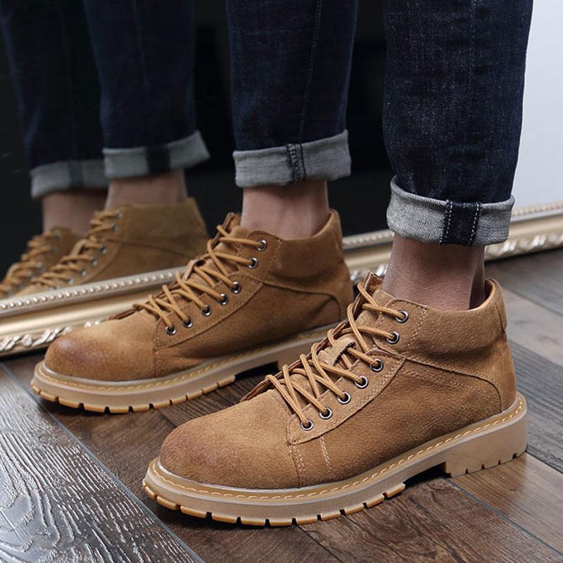 Новые мужские высокие ботинки осень-зима кожаные повседневные туфли для мужчин нескользящие уличные кроссовки на платформе в британском стиле для походов