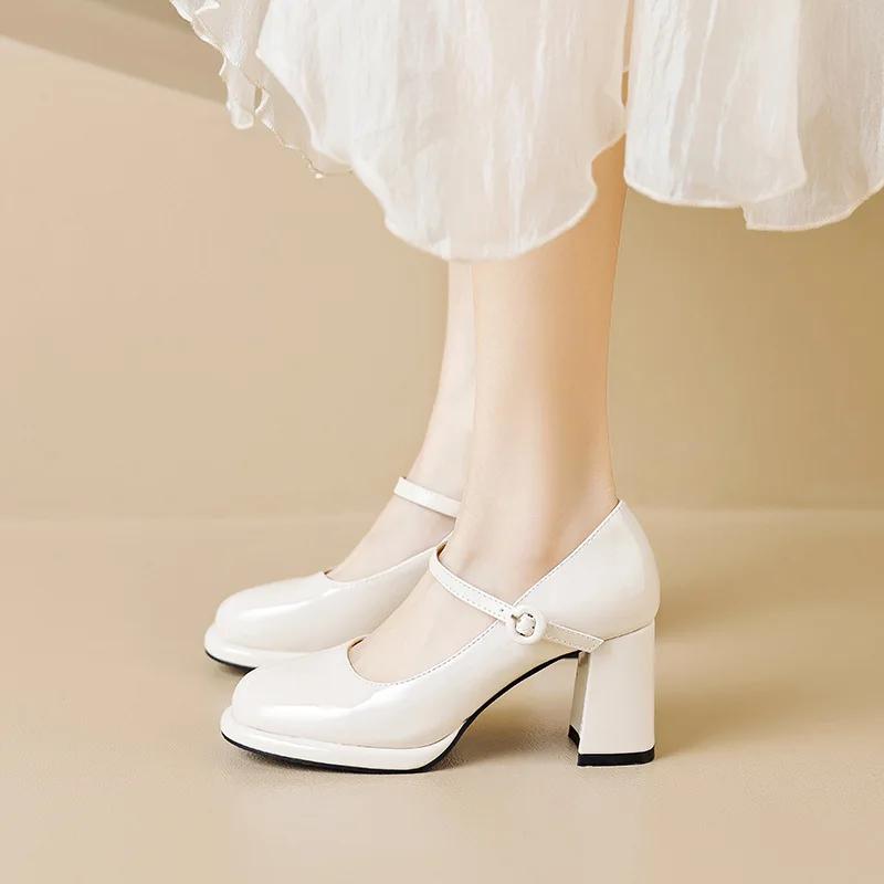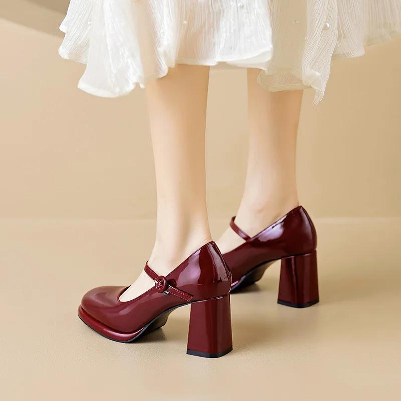 Женские туфли-лодочки 2025 года, новые красные туфли Мэри Джейн с круглым носком, модные удобные туфли на низком каблуке для женщин