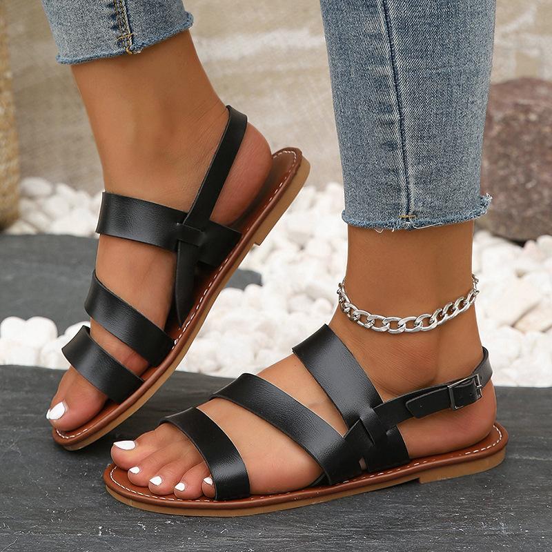 Женские сандалии на плоской подошве 2024 года, новые однотонные с открытым носком, с перекрестными ремешками и пряжками, летние сандалии-гладиаторы с противоскользящим покрытием Sandalias Mujer
