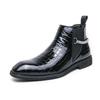 Итальянский стиль эластичная цепь дизайнерские ботинки челси для мужчин деловой круглый носок мужские ботильоны на платформе повседневная обувь мужская обувь