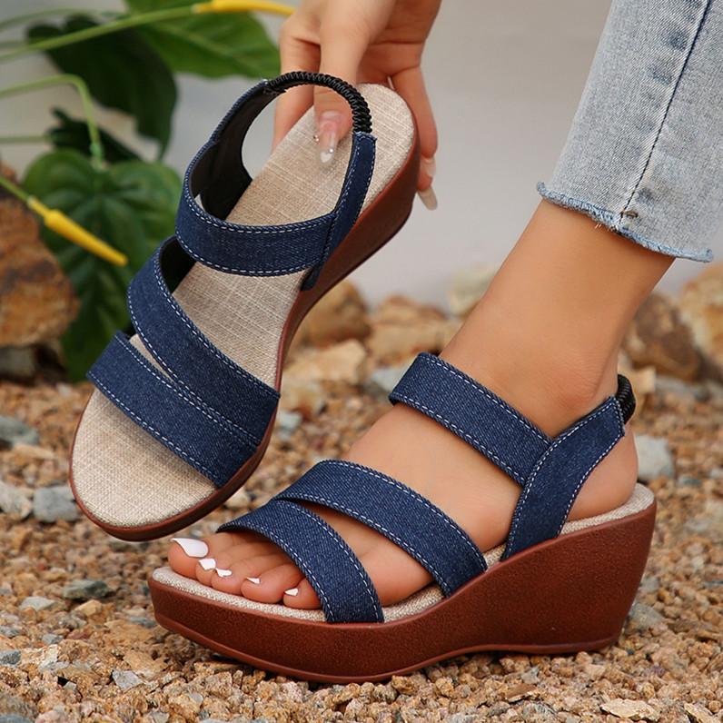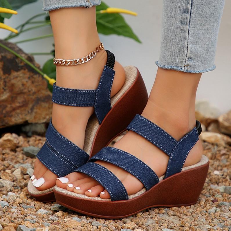 Лучшие продажи новых женских босоножек на танкетке, летние босоножки больших размеров на платформе с высоким каблуком, повседневные удобные нескользящие римские сандалии