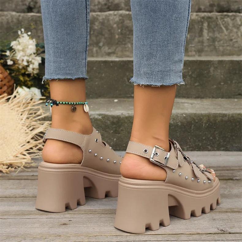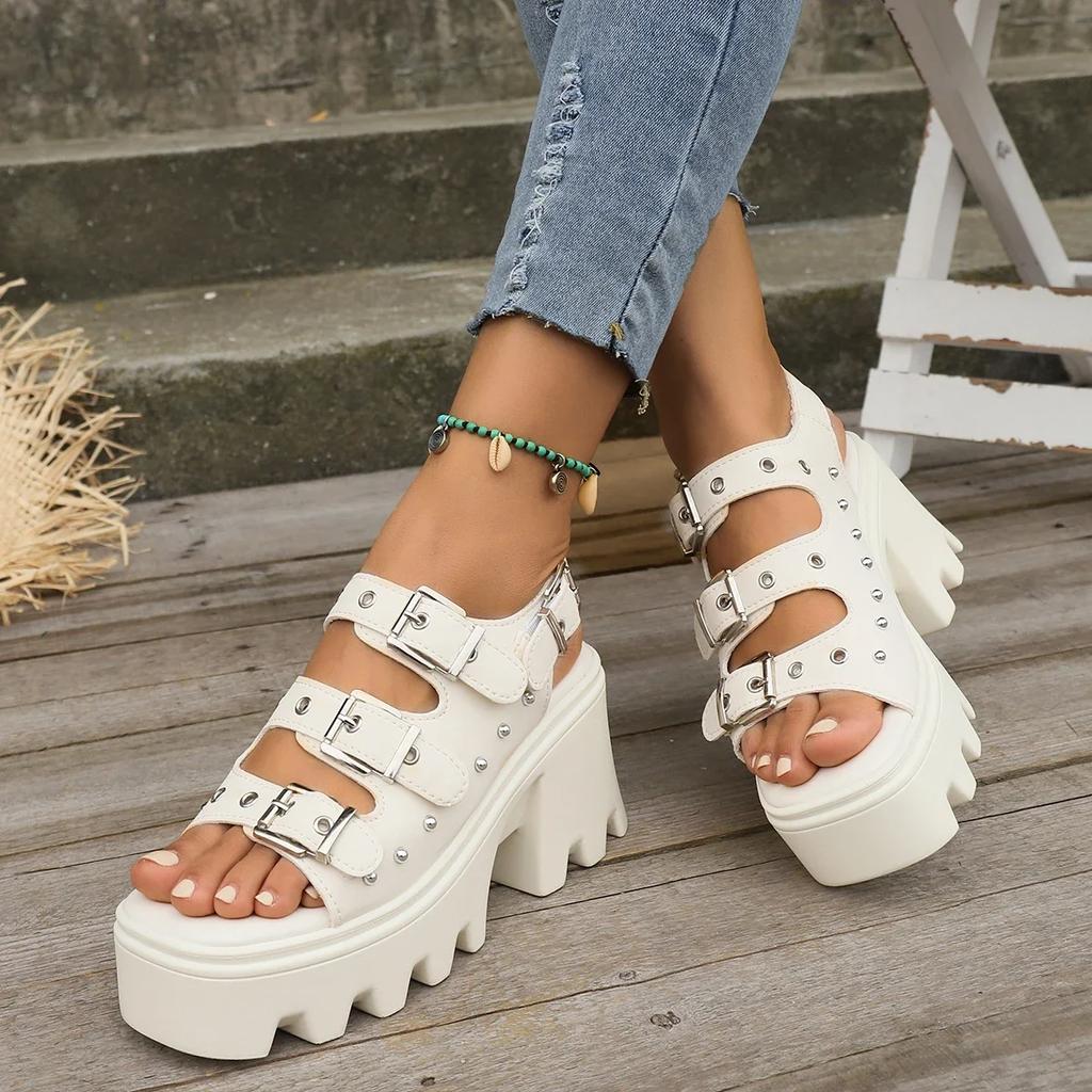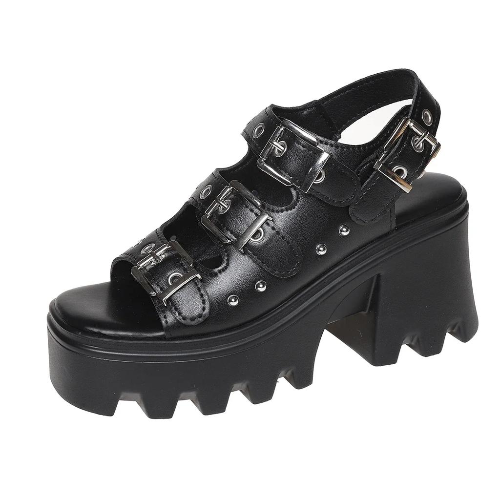 Летние женские босоножки на толстой платформе, женские римские сандалии с открытым носком и вырезами 2024 года, модные женские гладиаторские сандалии с пряжкой на ремне
