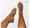 Летние женские сандалии с ремешком на щиколотке 2024 года, новые шлепанцы со стразами и ремешком на носке, модные римские сандалии золотистого цвета на плоской подошве