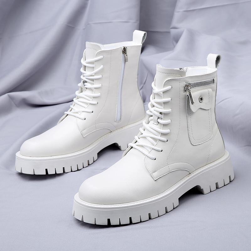 Мужские высокие повседневные массивные кроссовки, модные удобные мужские ботильоны из натуральной кожи, мужские классические ботинки на шнуровке белого/черного цвета