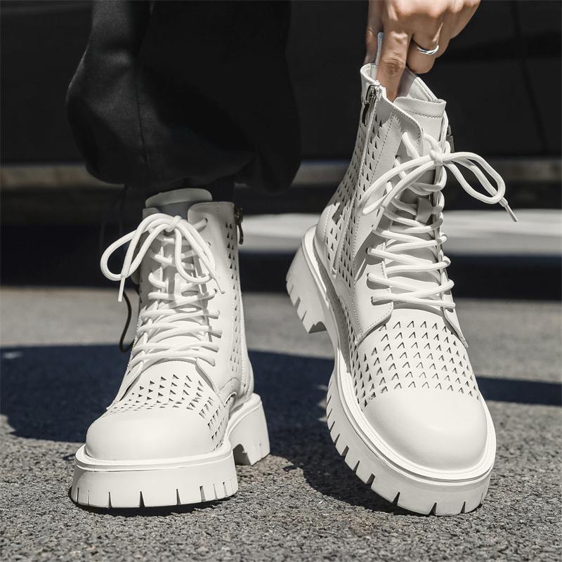 Мужские белые высокие кожаные ботинки 2024 года, новые зимние рабочие ботинки для ходьбы, ботинки на толстой подошве в британском стиле с выемками — купить товар онлайн с бесплатной доставкой по всему миру!