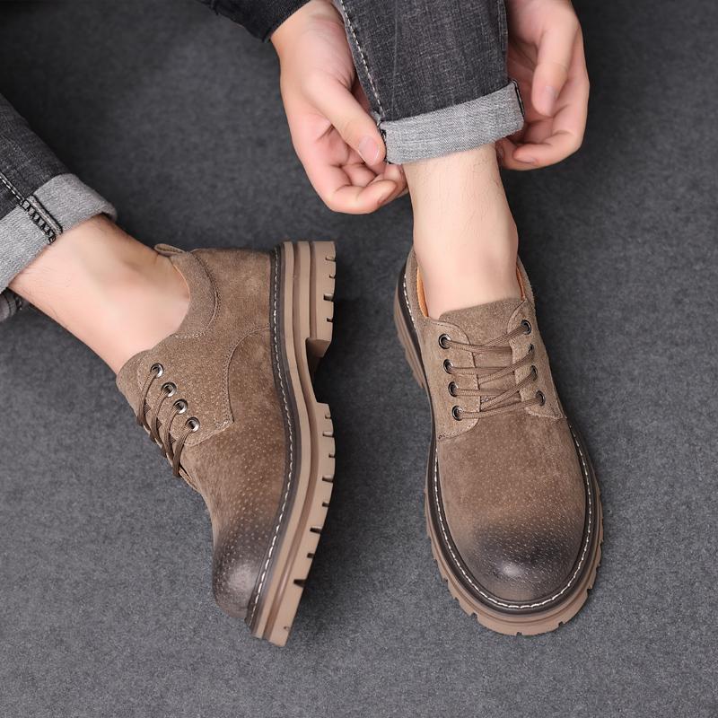 Мужские кожаные удобные рабочие туфли в британском стиле, модные классические кожаные туфли на шнуровке с большим носком, толстая подошва, нескользящая обувь