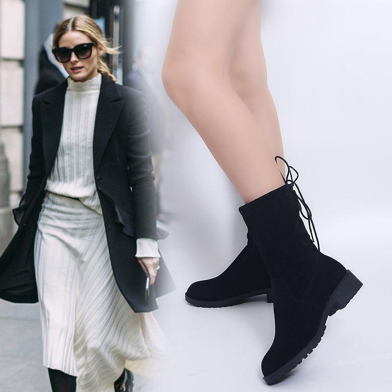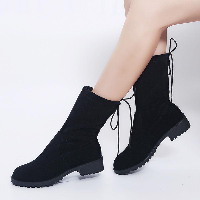Зимняя новая женская обувь 2024 года, модные универсальные замшевые короткие сапоги на толстом каблуке, сапоги средней длины, большой размер 35-43
