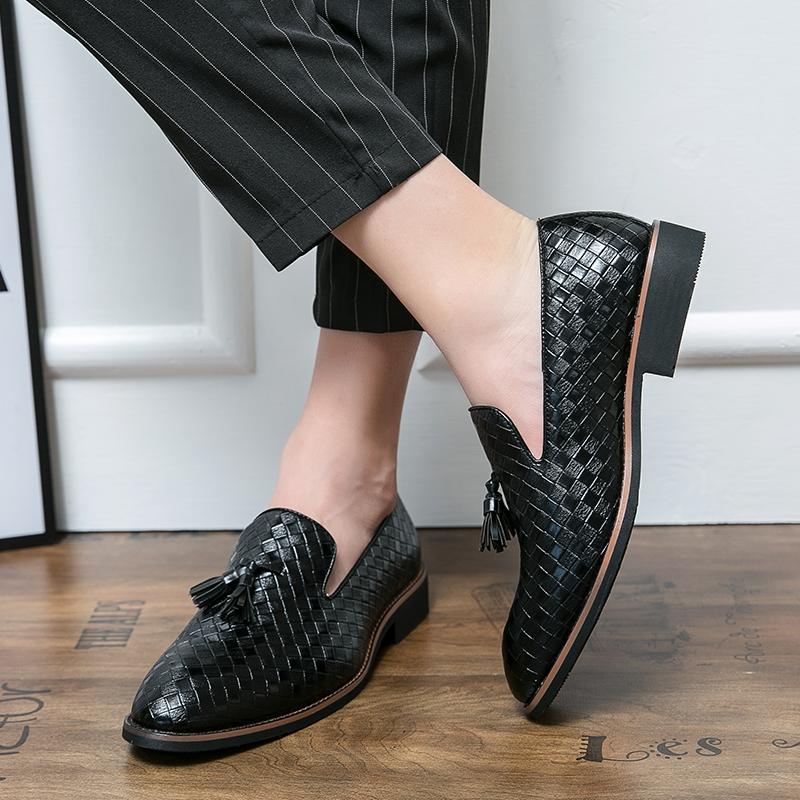 Роскошные брендовые мужские туфли с острым носком из кожи, мокасины с кисточками в британском стиле, черные высококачественные туфли, мужские туфли без застежек — купить товар онлайн с бесплатной доставкой по всему миру!