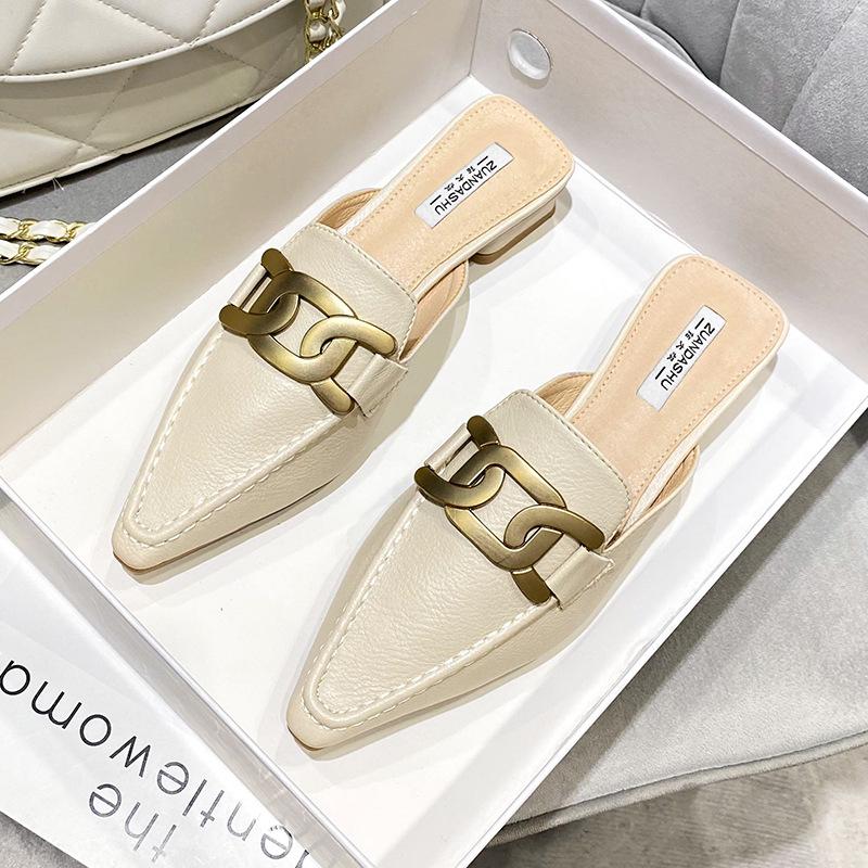 2024 Летняя новая обувь для женщин, модные тапочки, повседневные кожаные сандалии для девочек на каблуках с острым носком, мюли — купить товар онлайн с бесплатной доставкой по всему миру!
