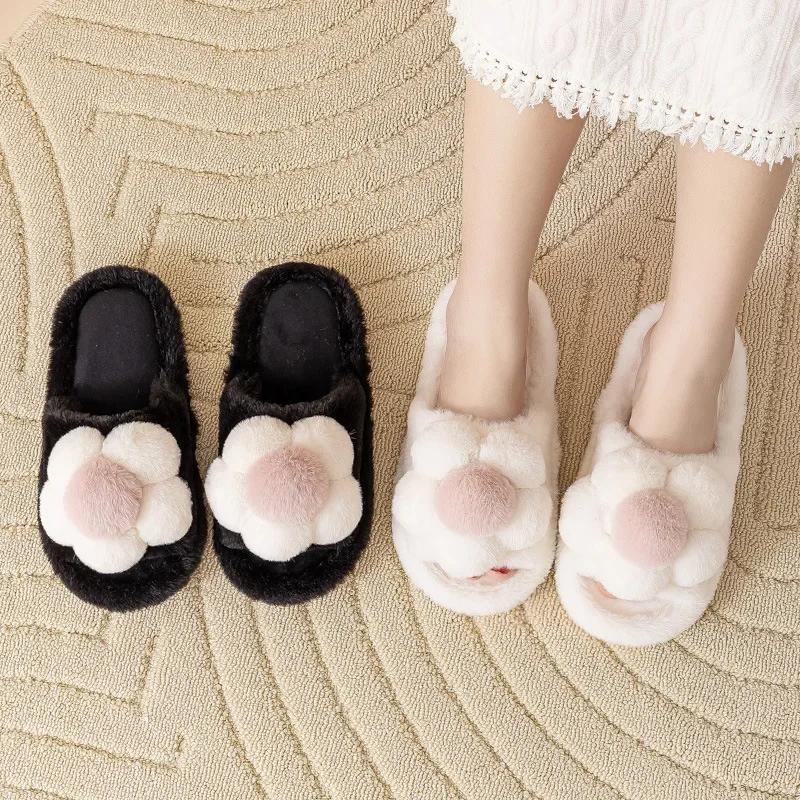 Женские модные пушистые домашние тапочки, зимние открытые носки, мягкие, на плоской подошве, женские удобные домашние нескользящие теплые пушистые хлопковые туфли