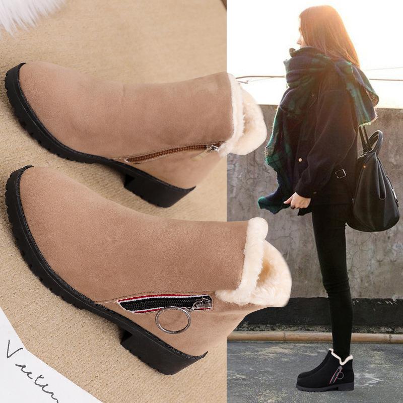 Новые женские туфли Брендовые зимние ботинки для снега Женские бархатные горячие ботинки Толстые меховые короткие ботинки Нескользящие британские хлопковые ботинки