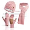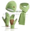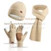 Зимний комплект из трех предметов: шерстяная шапка, шарф и кожаные перчатки в европейском и американском стиле для женщин — нескользящий