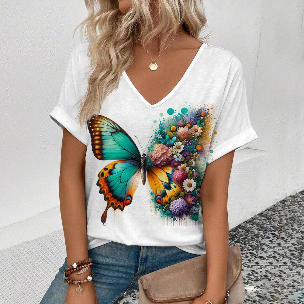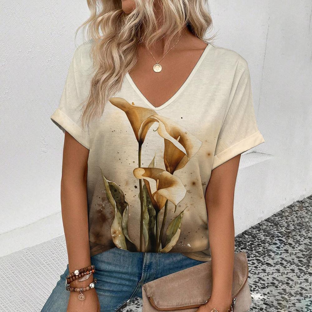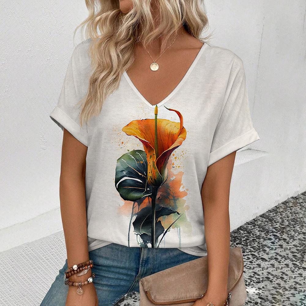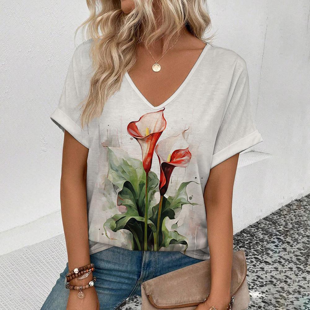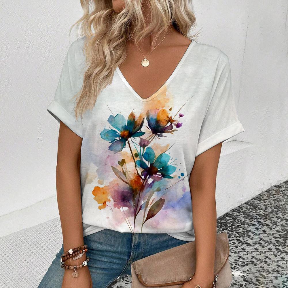 Модная футболка с цветочным принтом 3D, женская уличная одежда, летние повседневные футболки, топы Y2k, женские футболки Harajuku с V-образным вырезом, свободная одежда