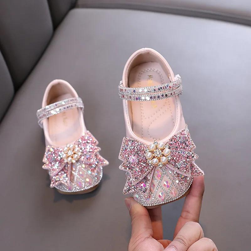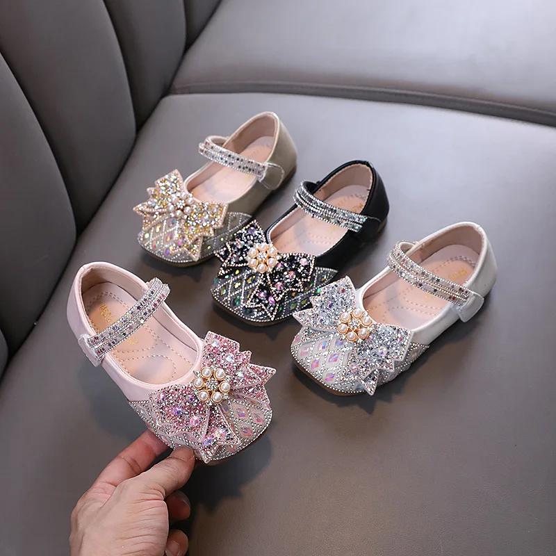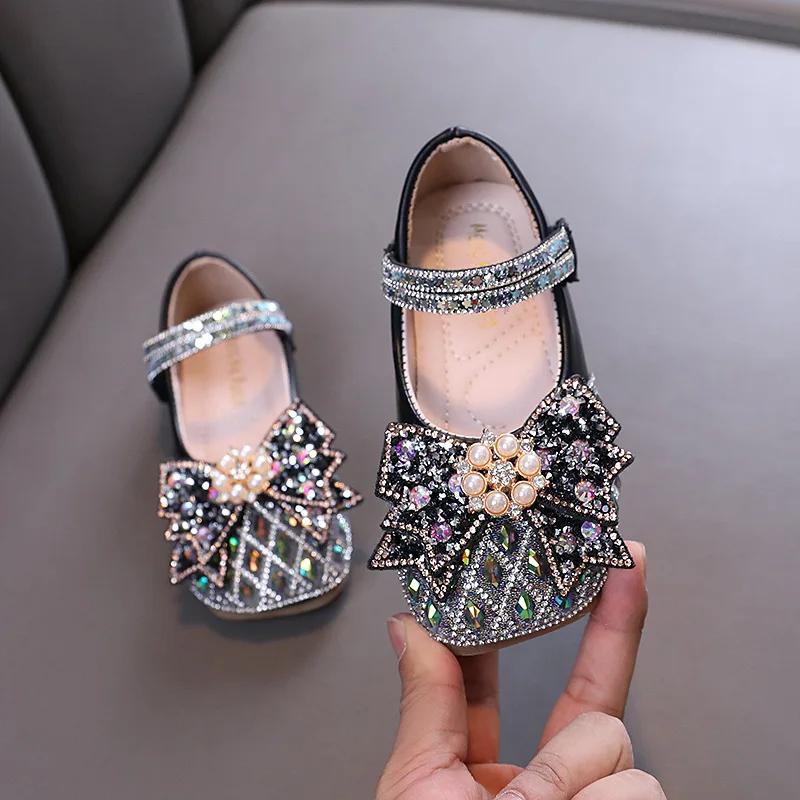 Весна Осень Девушка Принцесса Туфли Стразы Бабочка Дети Кожаные Туфли Модные Повседневные Блестки Детские Повседневные Свадебные Туфли На Плоской Подошве