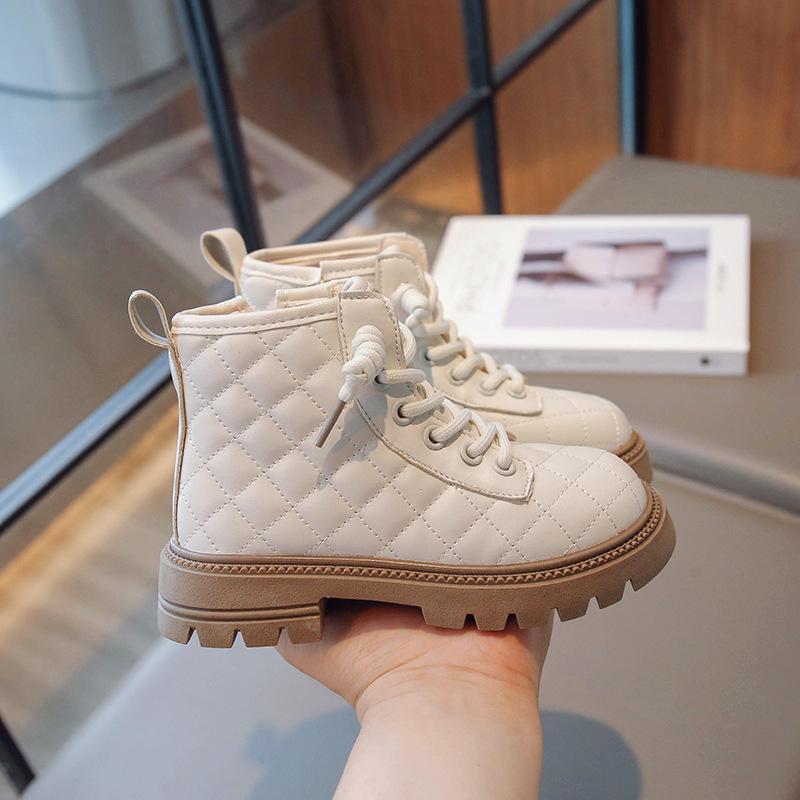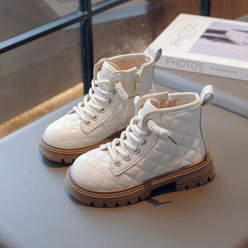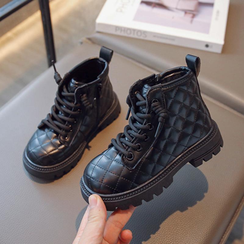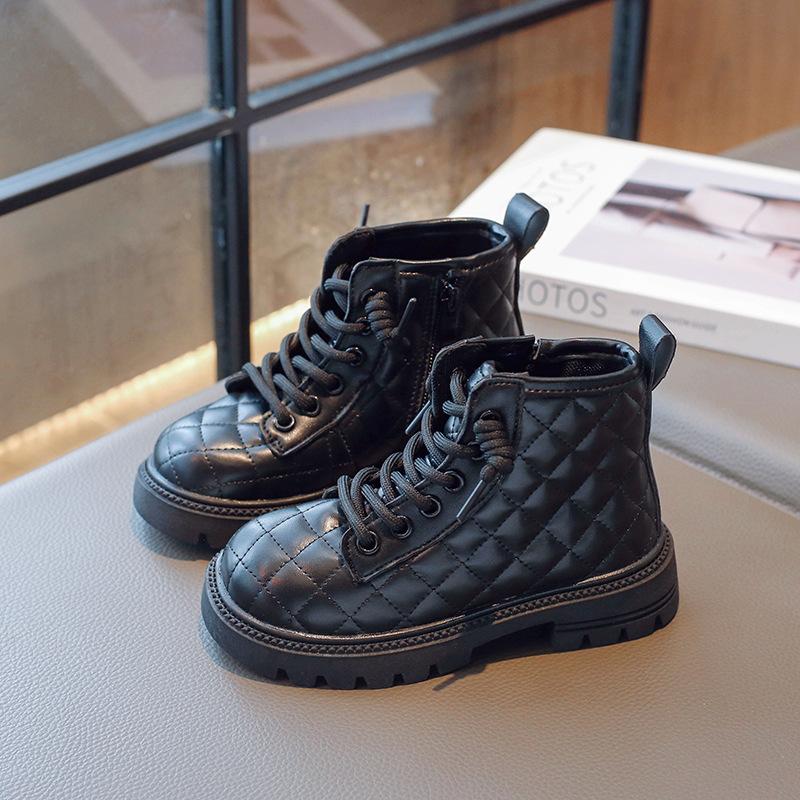 Осенние ботинки для девочки 2024 Новые черные на молнии сбоку с круглым носком Ботинки для мальчика Детские универсальные ромбовидные в клетку Нескользящие ботильоны