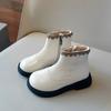Ботинки для девочек, зимние, черные, бежевые, универсальные, принцесса, ботильоны, милые, с оборками, универсальные, детские, модные, повседневные, хлопковые ботинки
