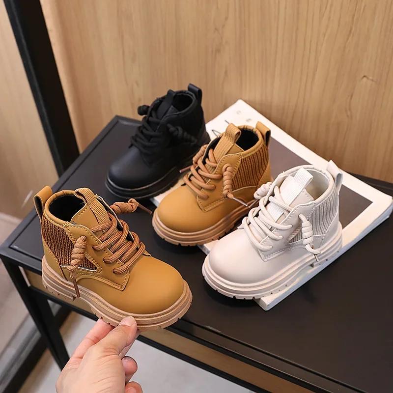 Детские осенние ботинки, однотонные ботильоны на платформе для девочек, модные, с круглым носком, для детей, повседневные, для мальчиков, школьные кожаные ботинки, универсальные