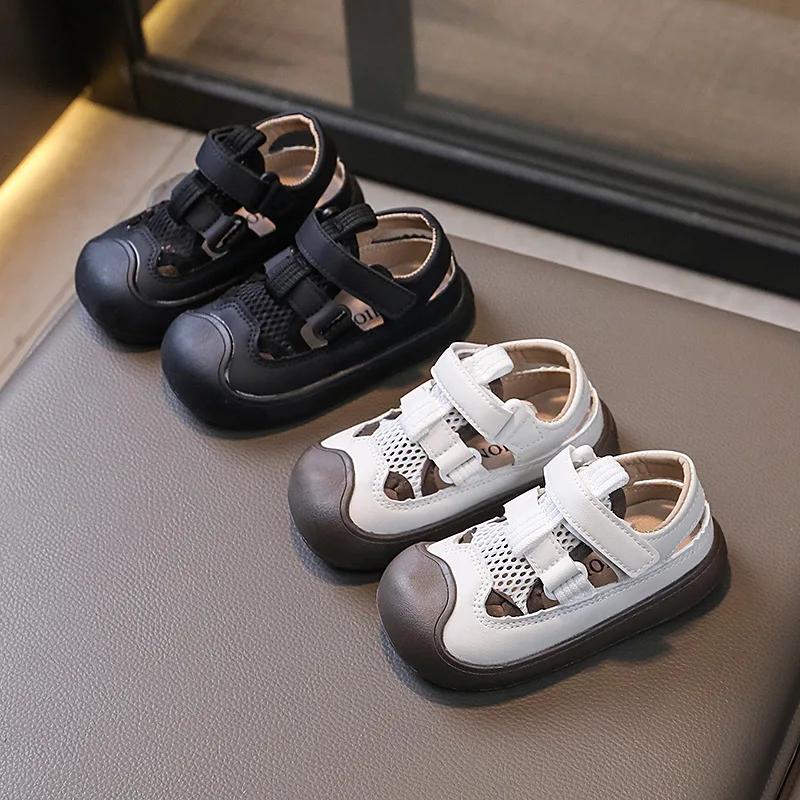 Детские сандалии в стиле пэчворк для девочек, повседневные, сандалии с толстой подошвой, модные, летние, для детей и мальчиков, с вырезами, пляжная обувь, нескользящая, универсальная