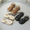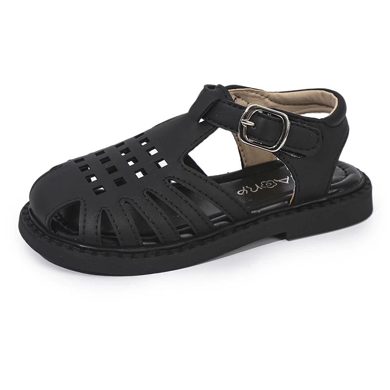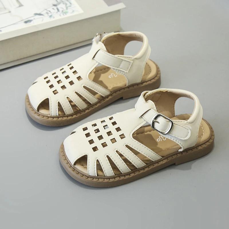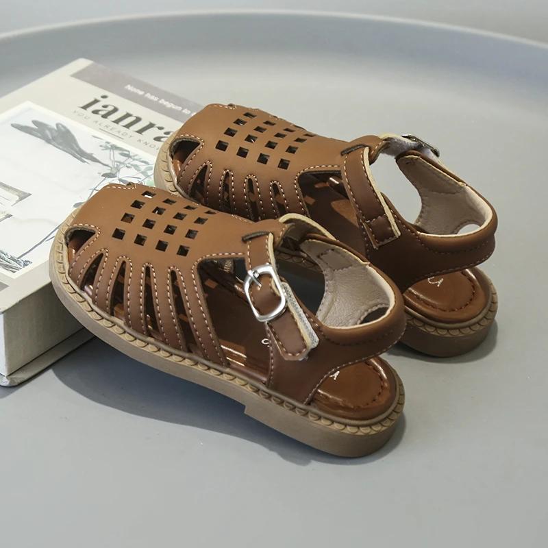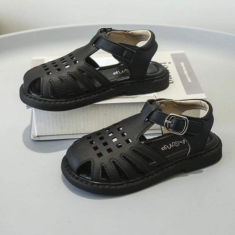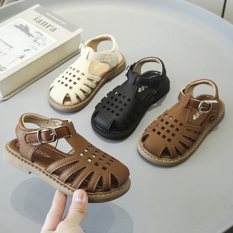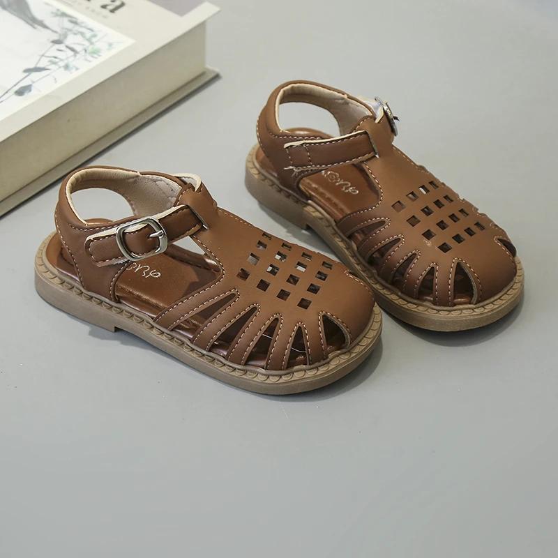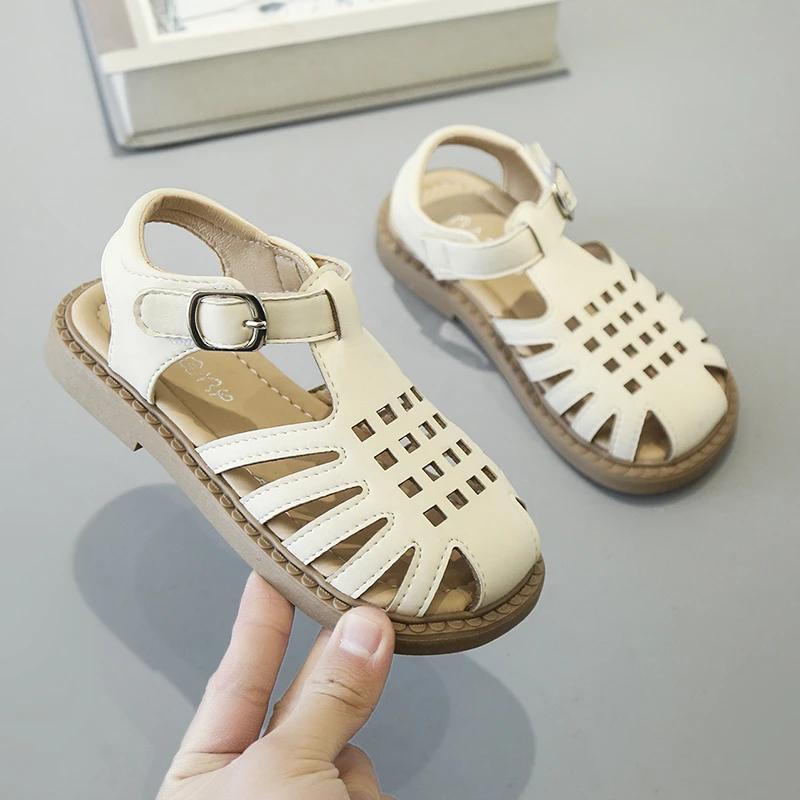 Сандалии для девочек, однотонные, летние, детские, сандалии на плоской подошве, модные, с вырезами, повседневные, детские, для мальчиков, прогулочные сандалии, закрытые пальцы ног