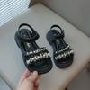 Летние сандалии для девочек, шикарные для свадебной вечеринки, жемчуг, бусины, классика 2024 года, принцесса, новые детские резиновые сандалии с открытым носком, мягкие, нескользящие