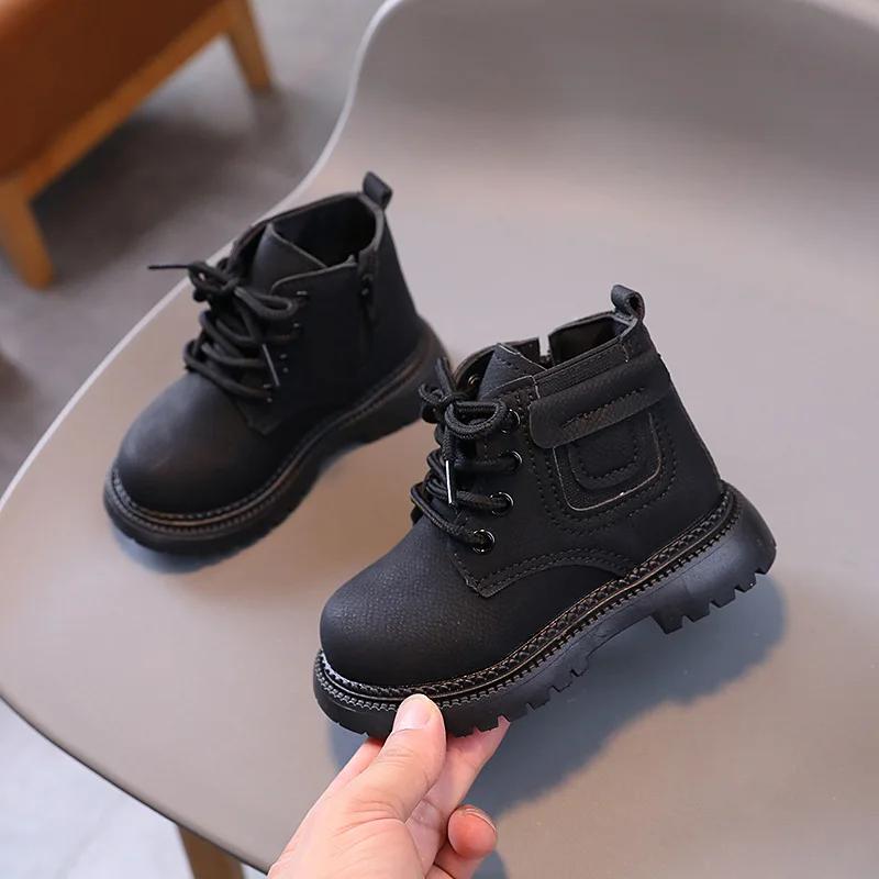 Новые детские осенние ботинки с круглым носком, черные ботинки для девочек, модные, нескользящие, повседневные, детские, ботильоны для мальчиков, универсальные, для школы
