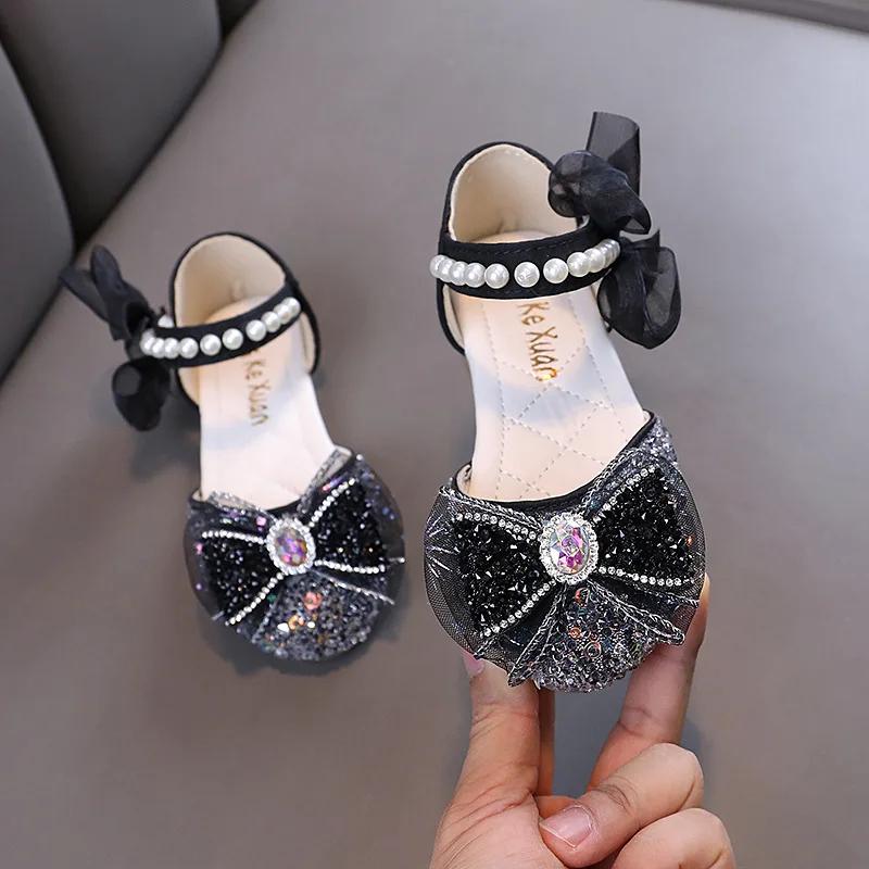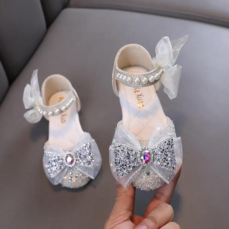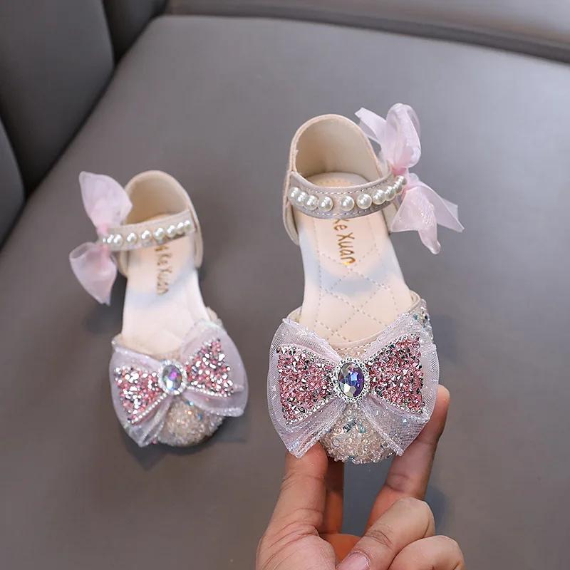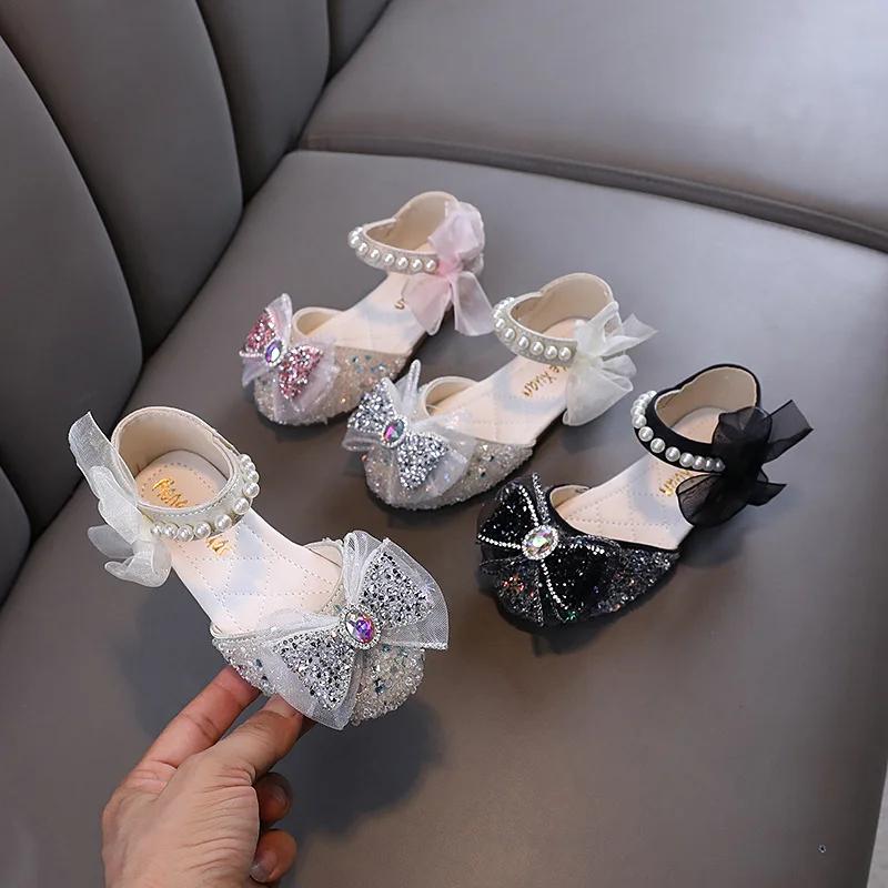 Летние детские сандалии для свадебной вечеринки, милые туфли для девочек-принцесс, модные кружевные бабочки, детские повседневные сандалии на плоской подошве с жемчужным платьем, популярные