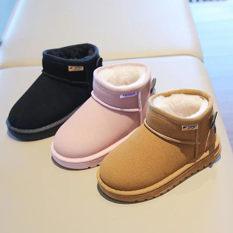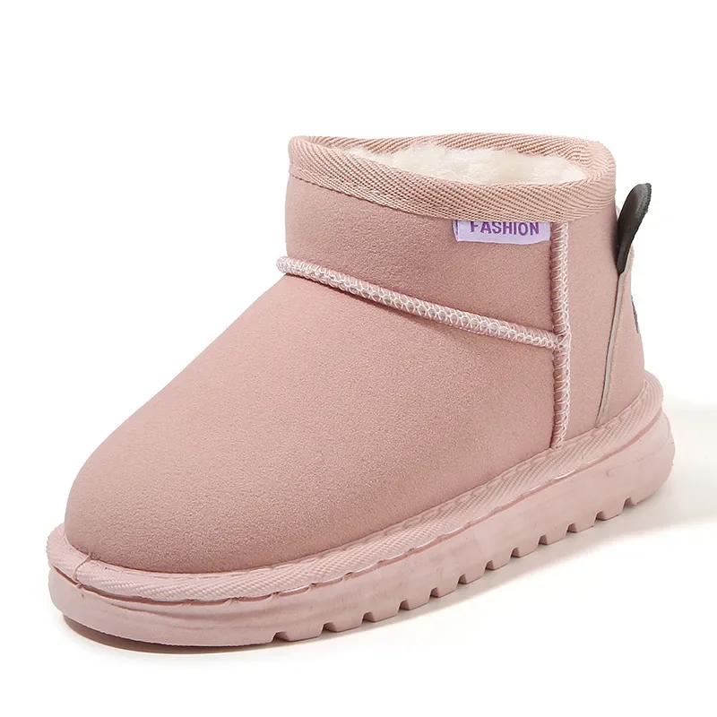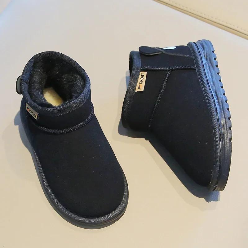 Новые зимние детские ботинки для девочек, теплые плюшевые зимние ботинки для мальчиков, модные нескользящие детские повседневные хлопковые ботинки, однотонные, дышащие