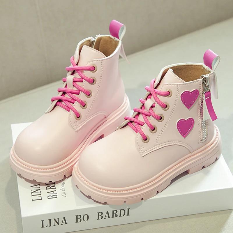 Ботильоны для девочек, милые детские сапоги принцессы с сердечками для влюбленных, осень 2024, новые короткие сапоги для девочек в корейском стиле, модные, универсальные