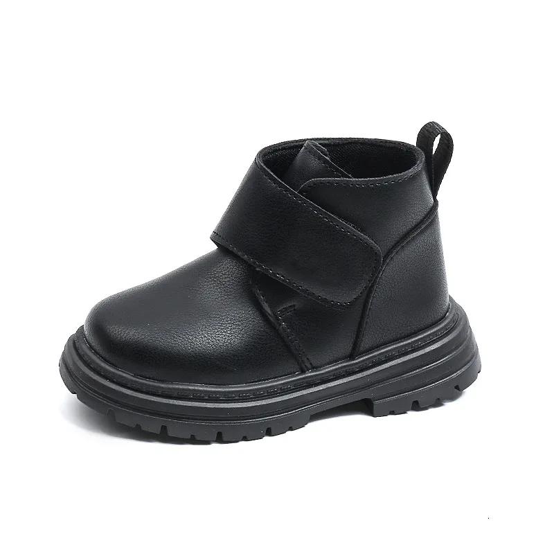 Детские кожаные ботинки, однотонные, универсальные, для мальчиков и девочек, короткие ботинки, нескользящие, осень 2024, новые модные детские ботильоны в британском стиле