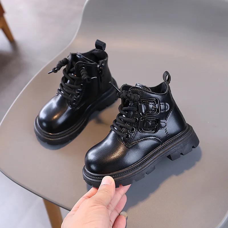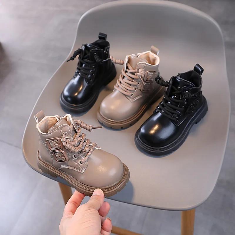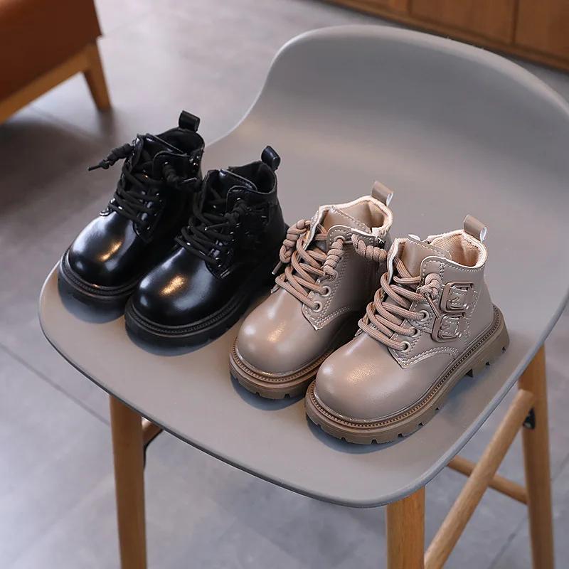 Весенне-осенние детские ботинки для мальчиков с круглым носком, универсальные ботильоны для девочек, повседневные детские школьные модные ботинки с толстой подошвой, новые