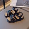 Сандалии для девочек с перекрестными ремешками в корейском стиле, детские летние новые открытые римские сандалии, стильные детские туфли с открытым носком и толстой подошвой