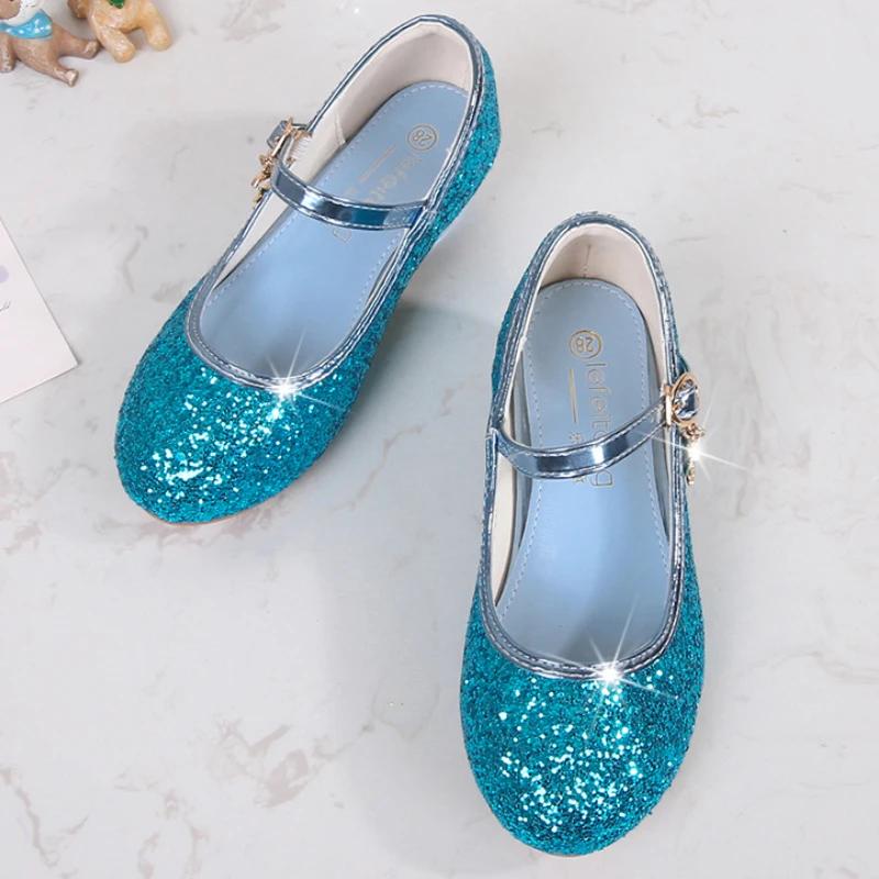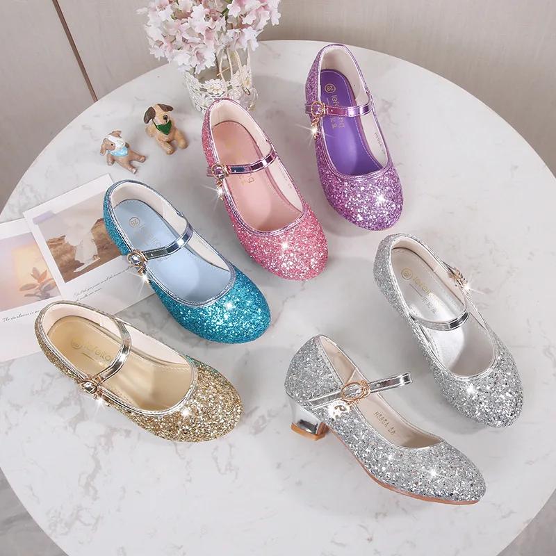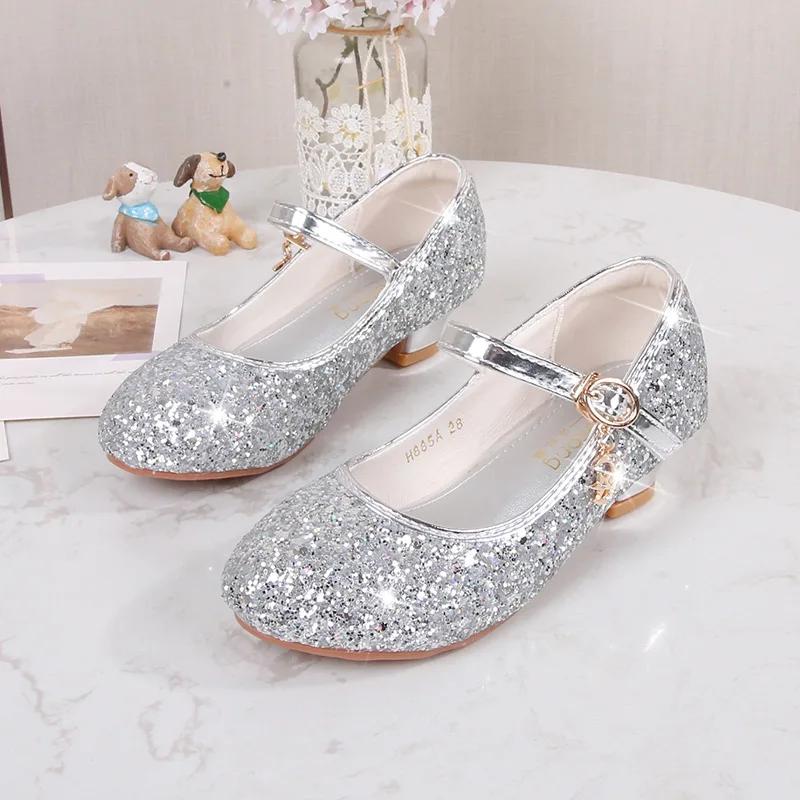 Детские туфли принцессы из кожи с блестками, модные детские блестящие туфли для свадебной вечеринки, универсальные элегантные туфли для девочек на высоком каблуке