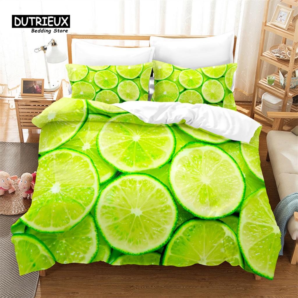 Яркий фруктовый комплект пододеяльника, Модный постельный комплект, Мягкий, удобный, дышащий пододеяльник, Для декора спальни, гостевой комнаты