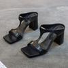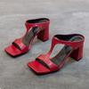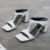 Летние женские босоножки с квадратным носком и блочным каблуком, модные тапочки, сексуальные Т-образные босоножки с открытым носком и высоким каблуком, большие размеры