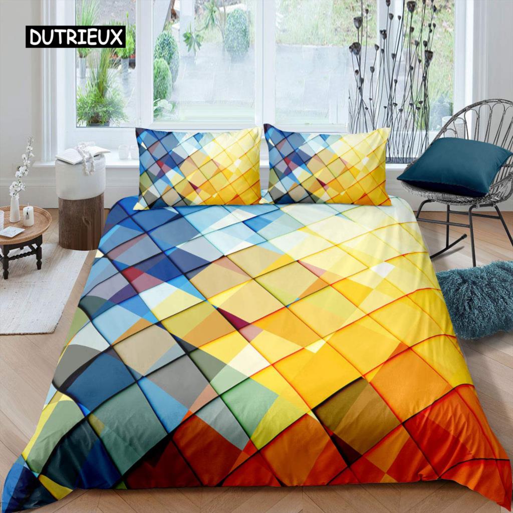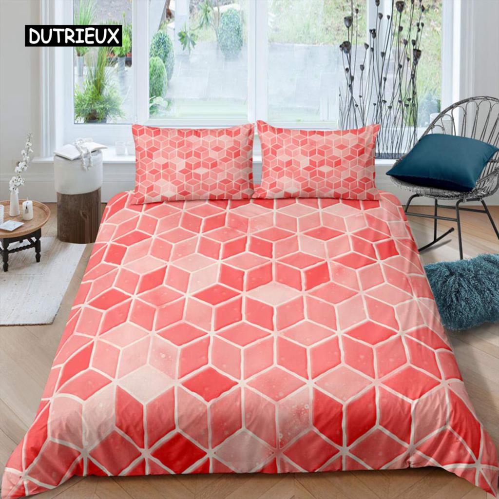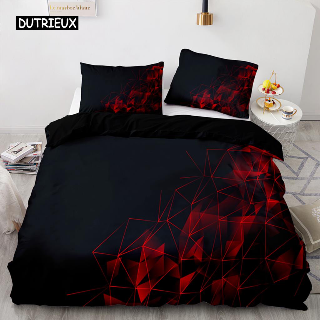 Комплект постельного белья с красным светящимся узором в виде полигональной сетки 135×200, пододеяльник с наволочкой 260×220, черный пододеяльник