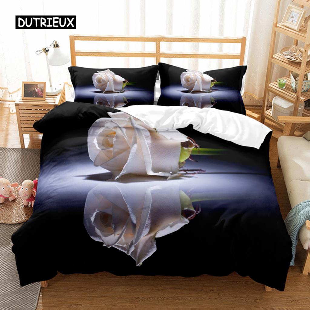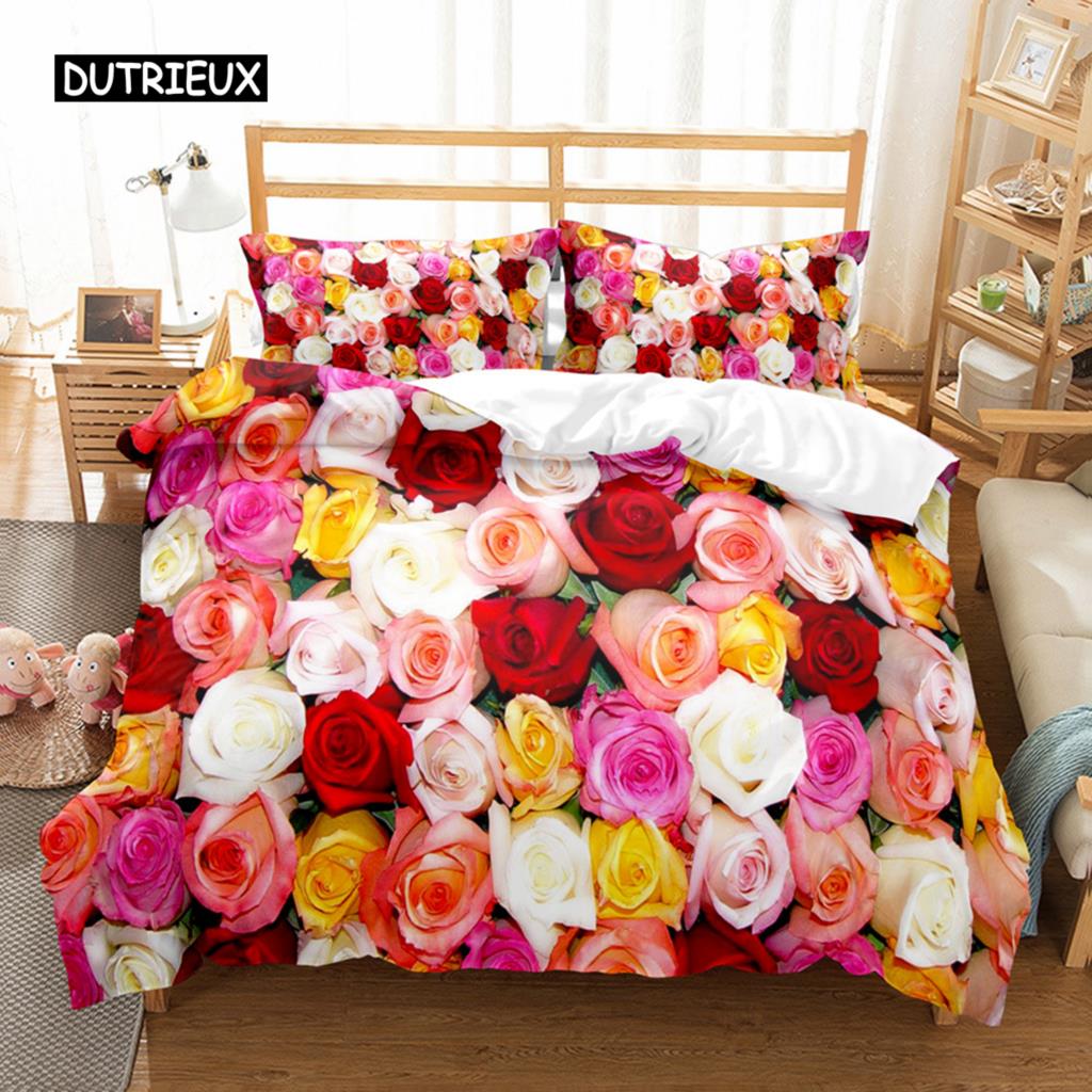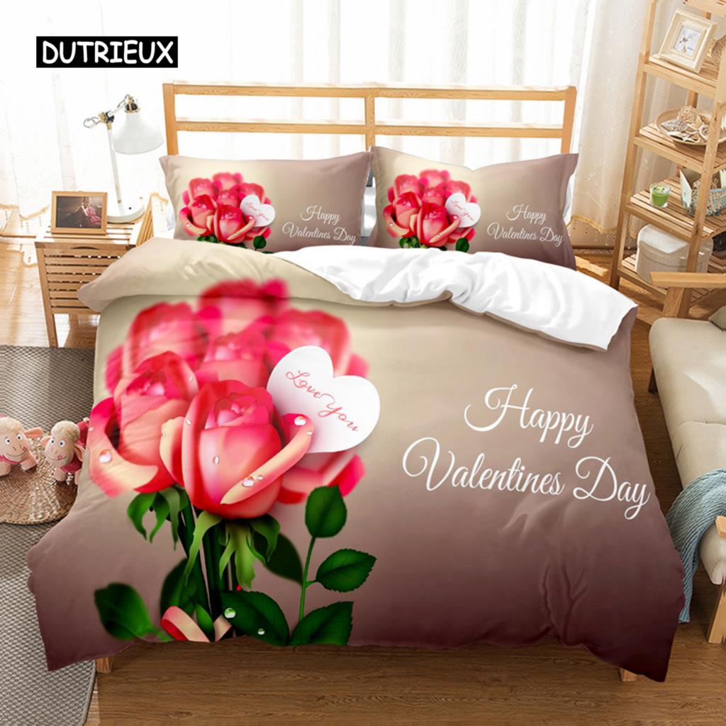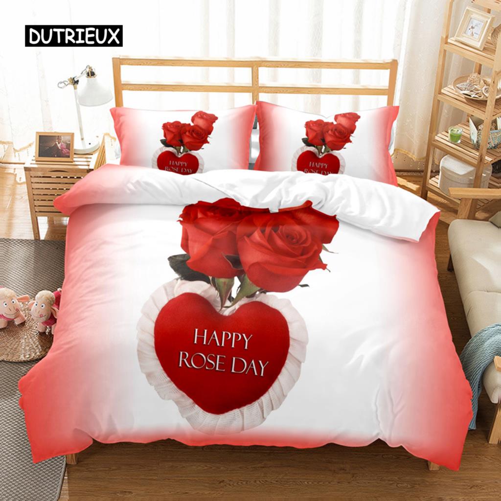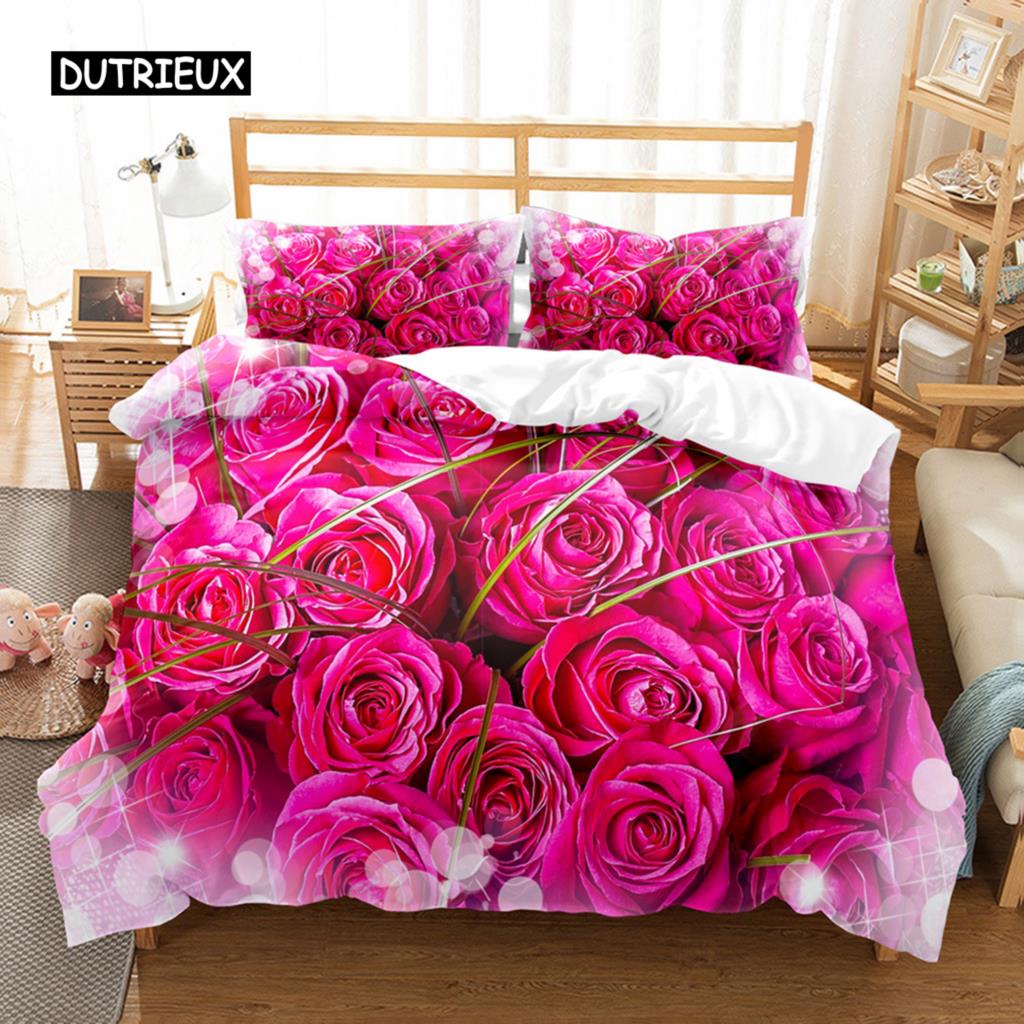 Пододеяльник с розовым рисунком Комплект постельного белья «Роза» для двоих на День святого Валентина Постельное белье на День матери с цветочной тематикой Двуспальная кровать с двумя кроватями King из полиэстера
