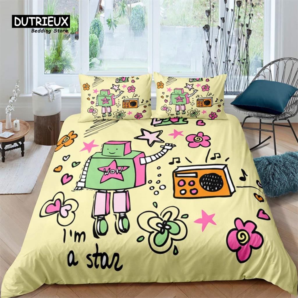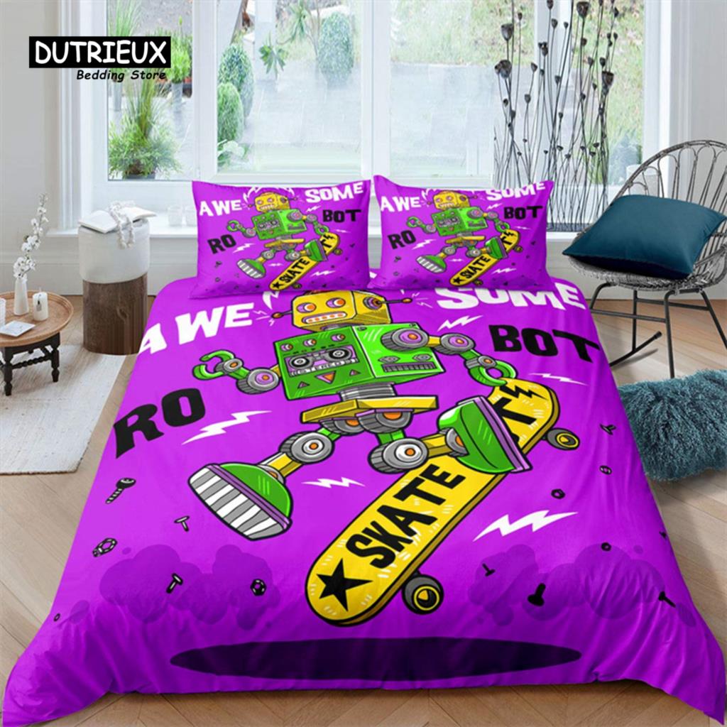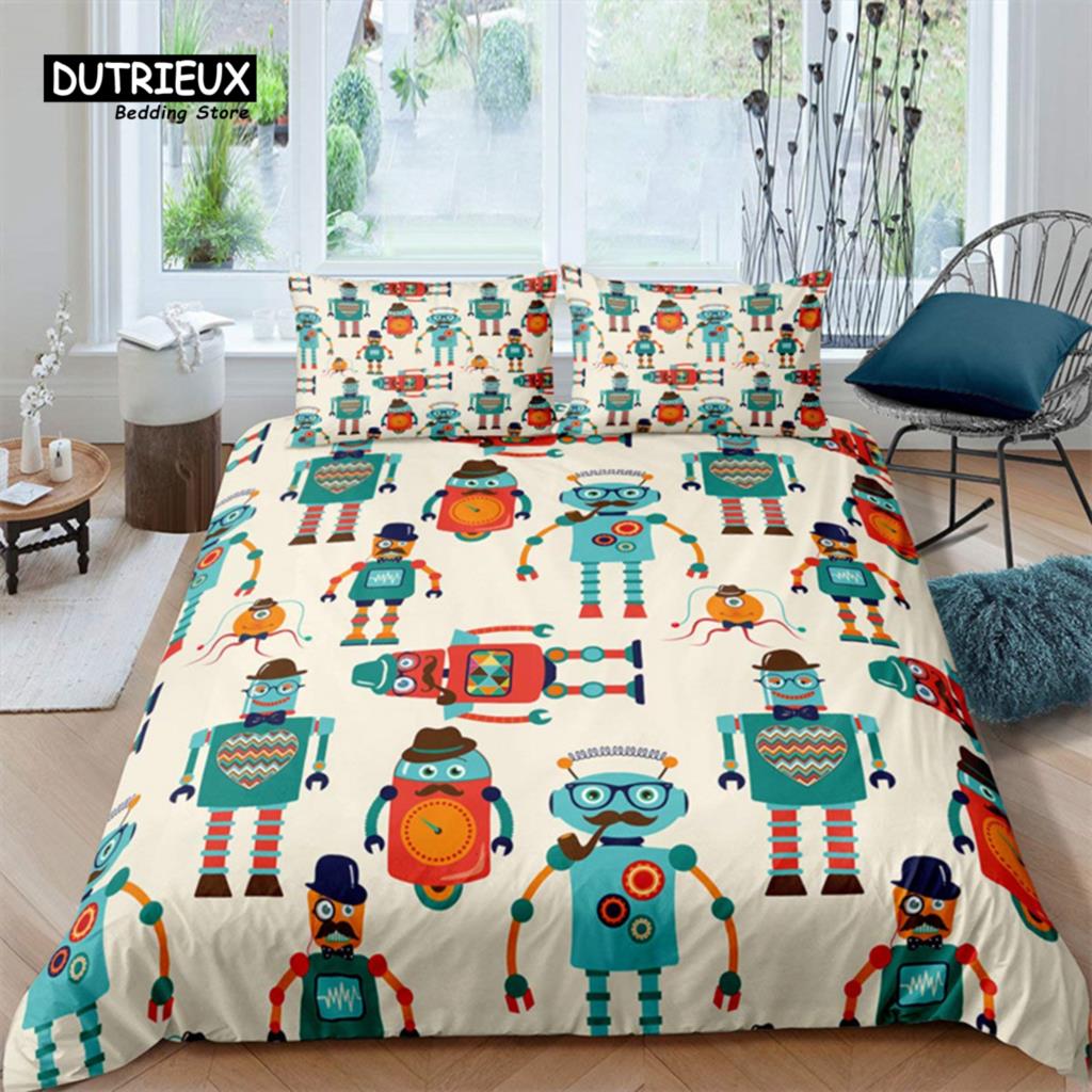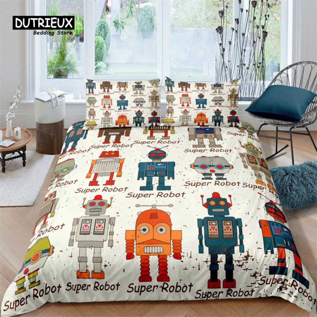 Комплект постельного белья с изображением робота, мультяшный космический робот, комплект постельного белья в стиле пэчворк, футуристическая машина, одеяло, чехол для близнеца, полный комплект для мальчика