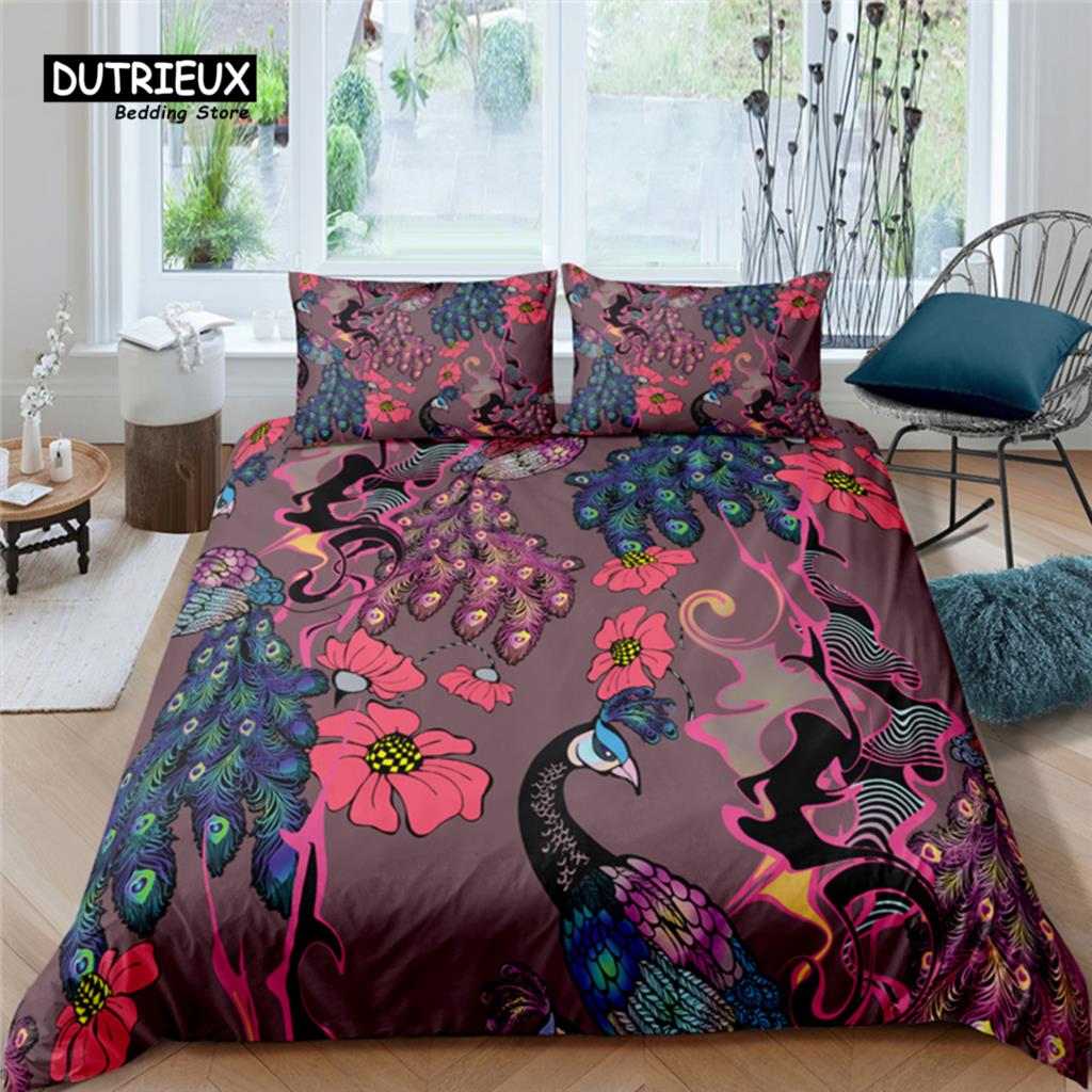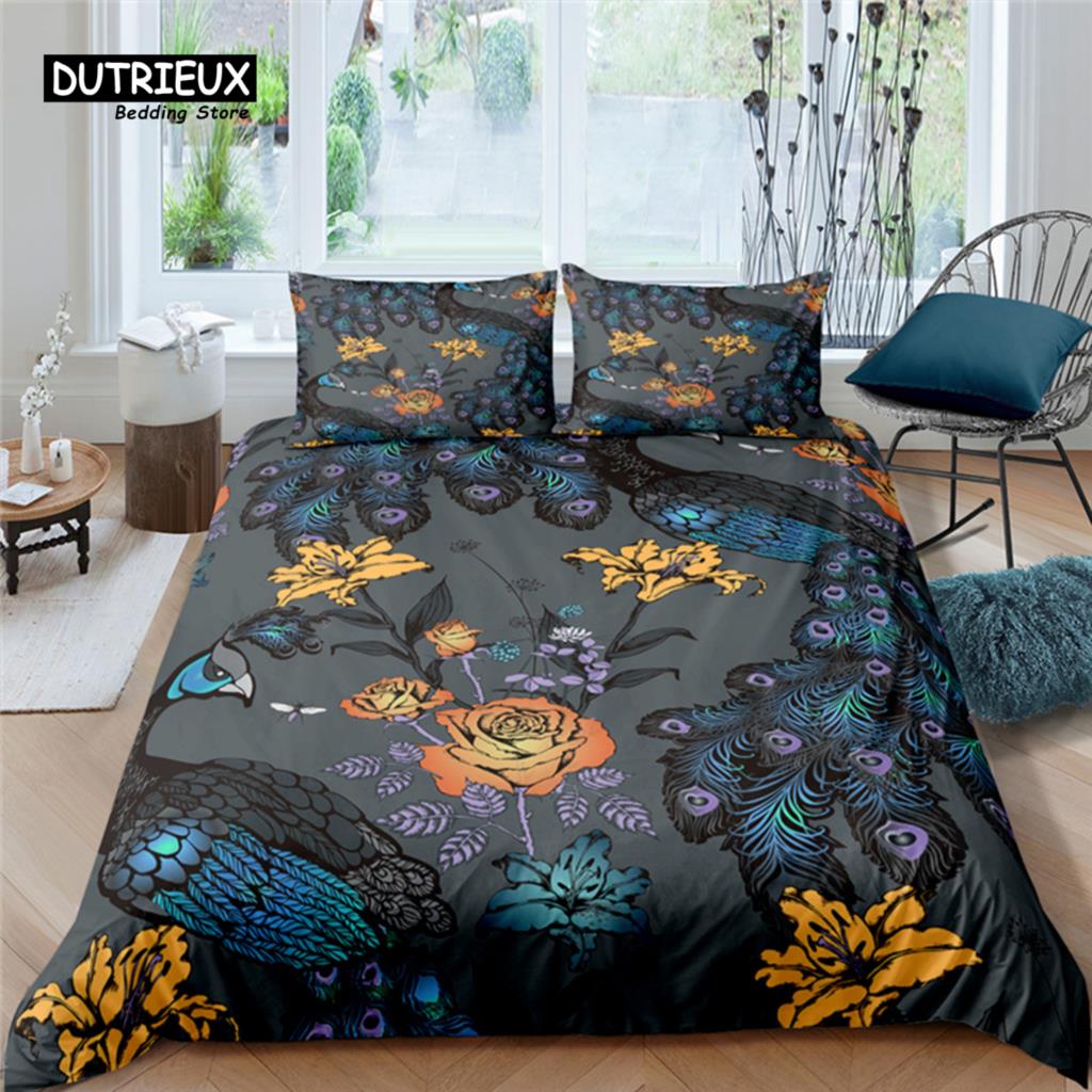 Роскошный комплект постельного белья с принтом павлина для дома 2/3 предмета Мягкий пододеяльник Наволочка Размер Квин и Кинг Детский комплект постельного белья Размер ЕС/США/Австралии