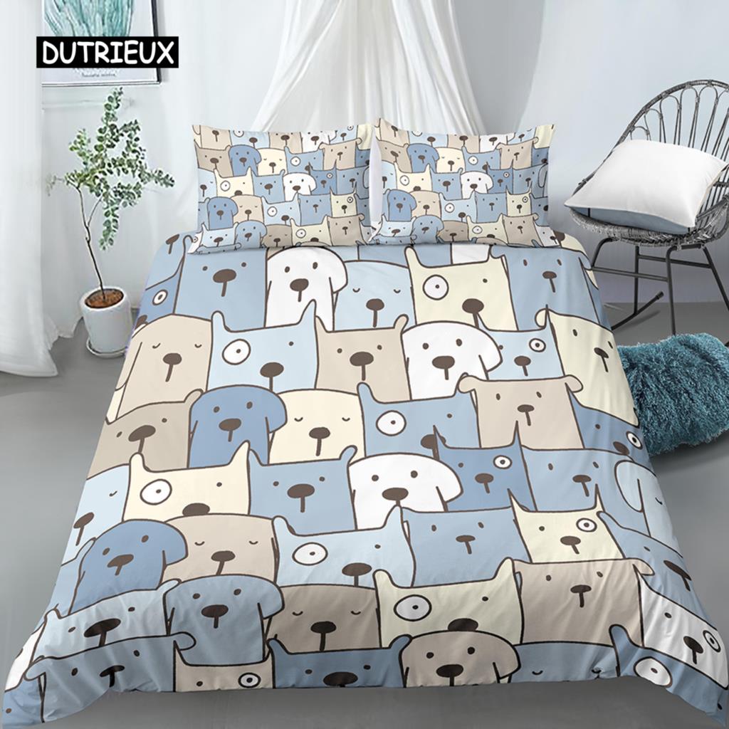 Пододеяльник с изображением мультяшной собаки, комплект постельного белья King Size с забавным принтом мопса для детей, мальчиков и девочек, тема животных, 2/3 шт., двойной пододеяльник