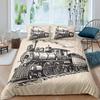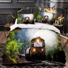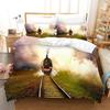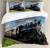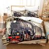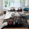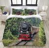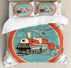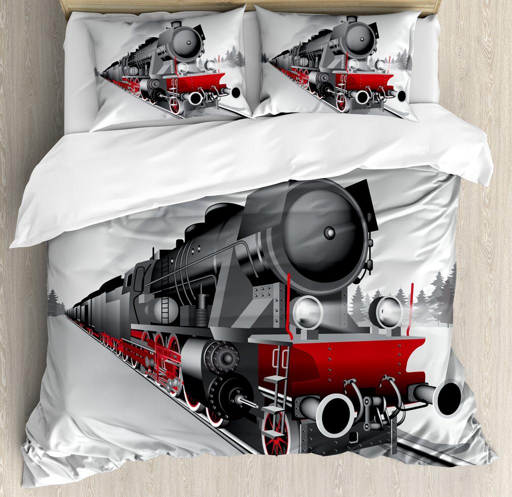 Красно-серый паровой двигатель пододеяльник локомотив красно-черный поезд на стальных железнодорожных путях путешествие приключения графическое украшение спальни