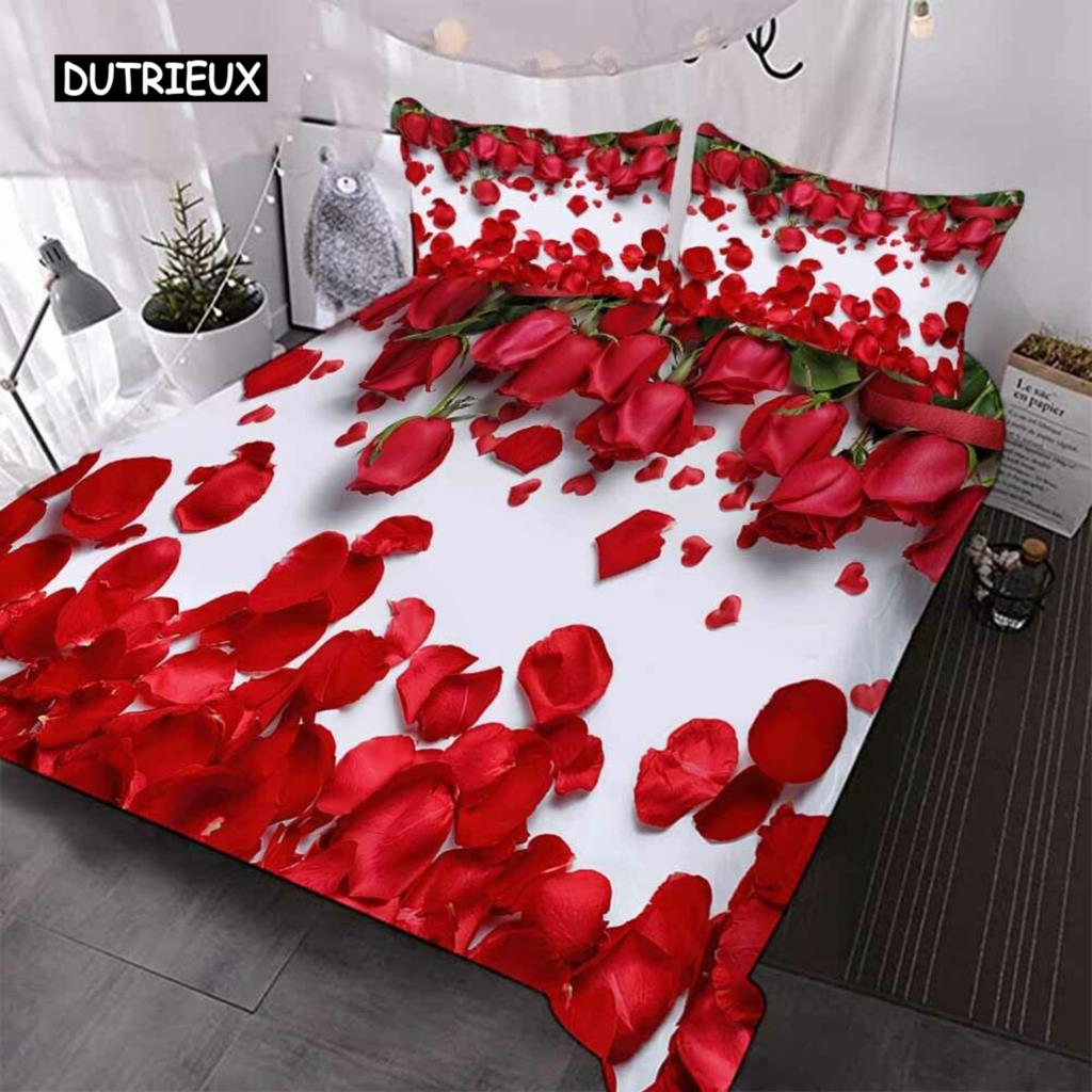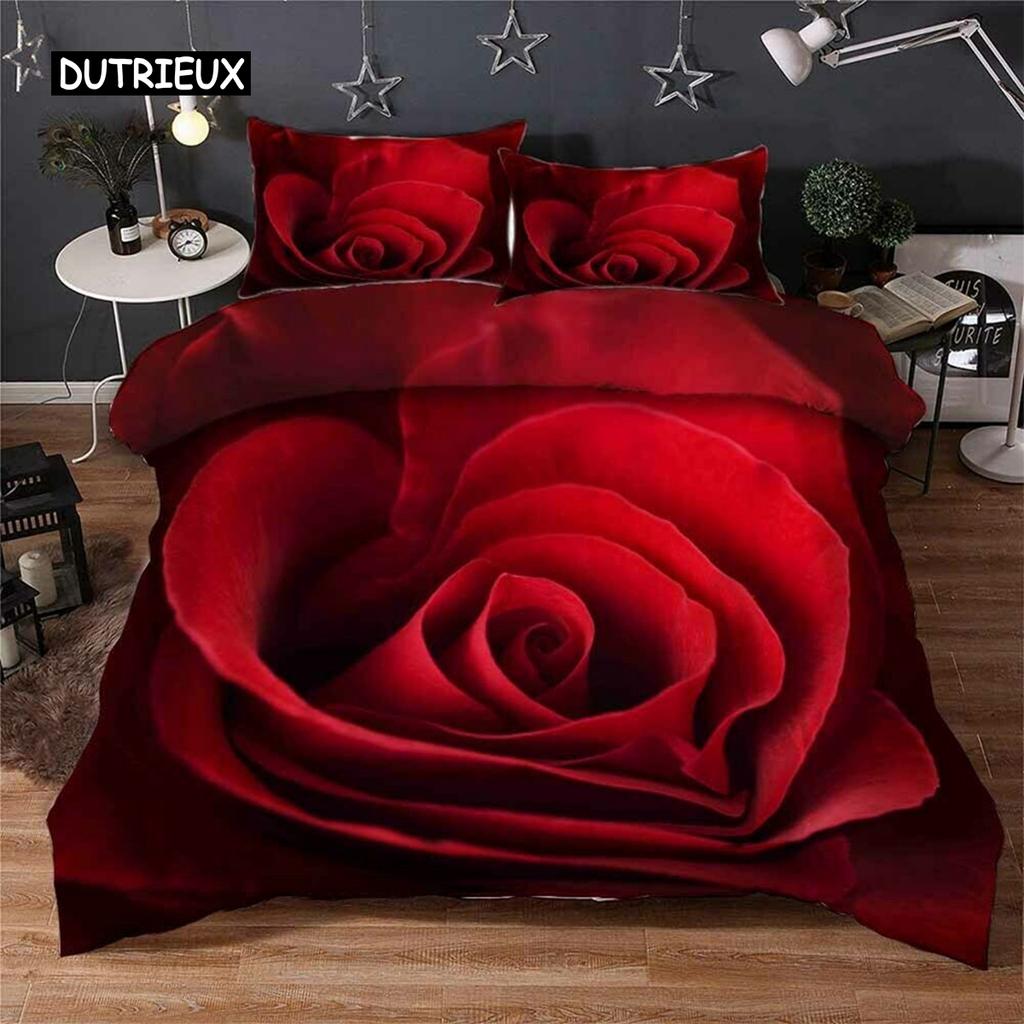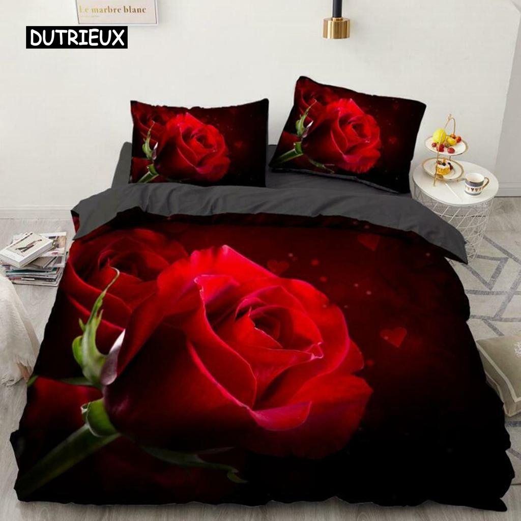 Комплект постельного белья с 3D-розой и сердечками, пододеяльник в скандинавском стиле 150x200, 220x240, пододеяльник размера «king size», наволочка с современным принтом «кошка, волк» и без простыни