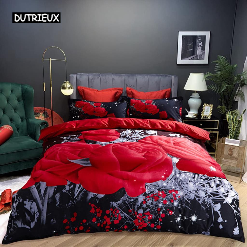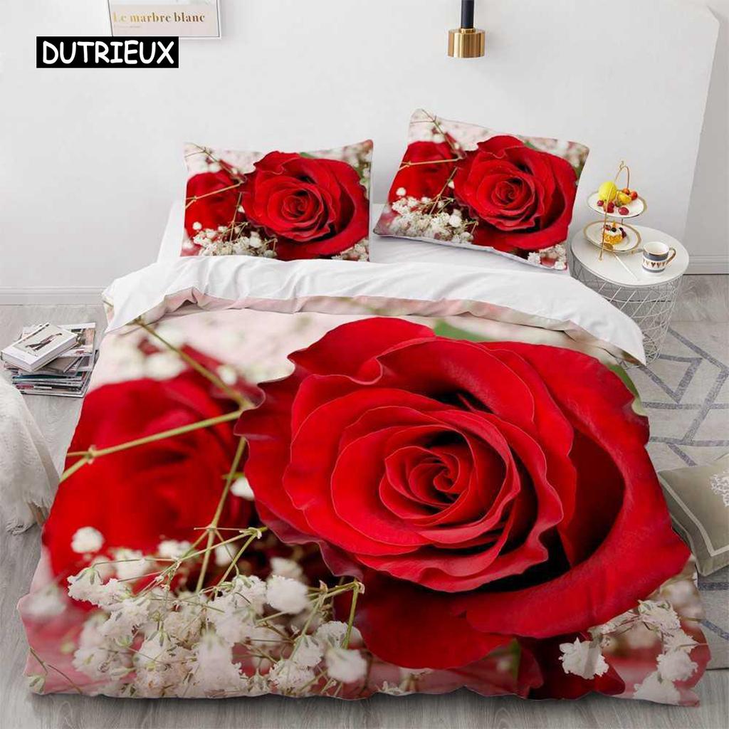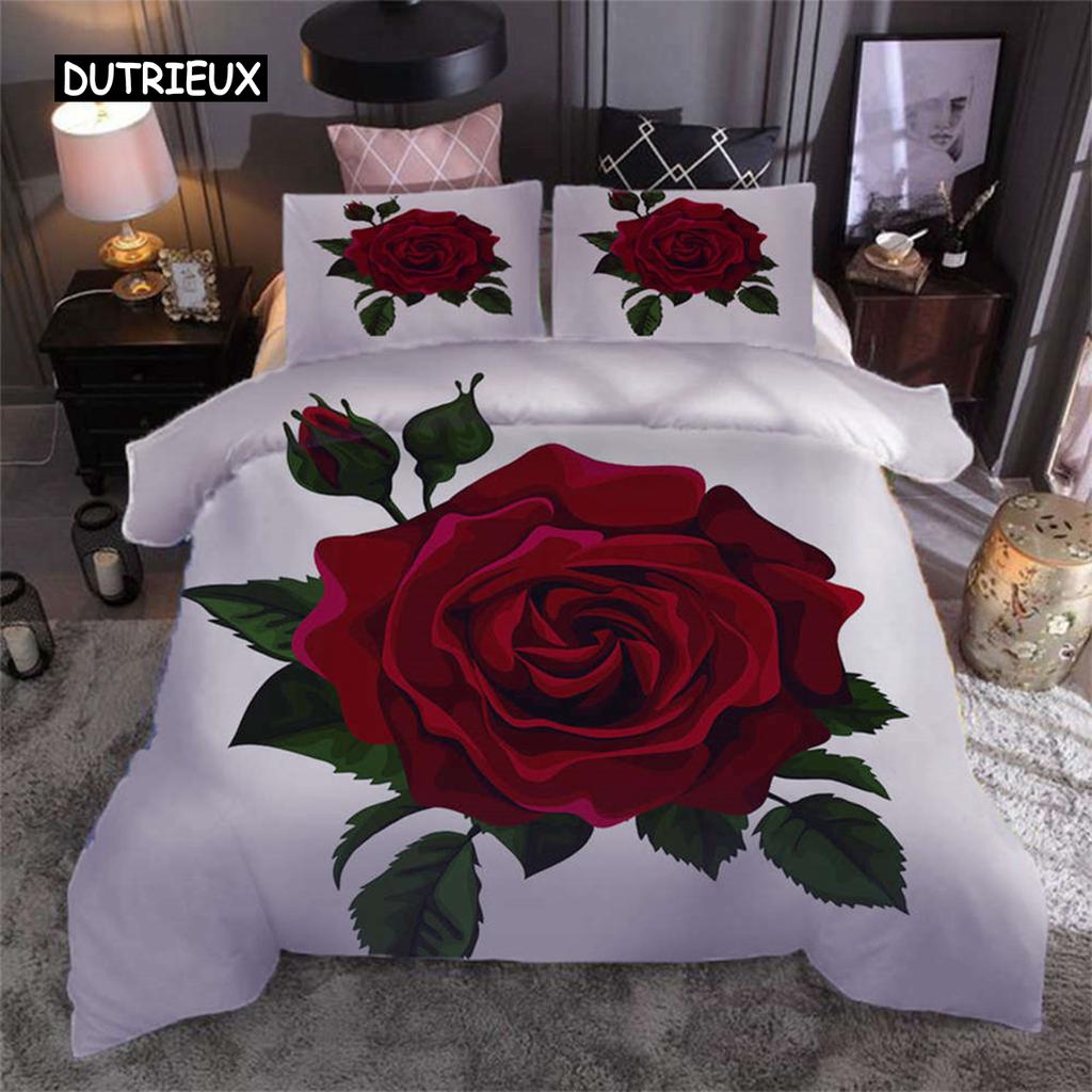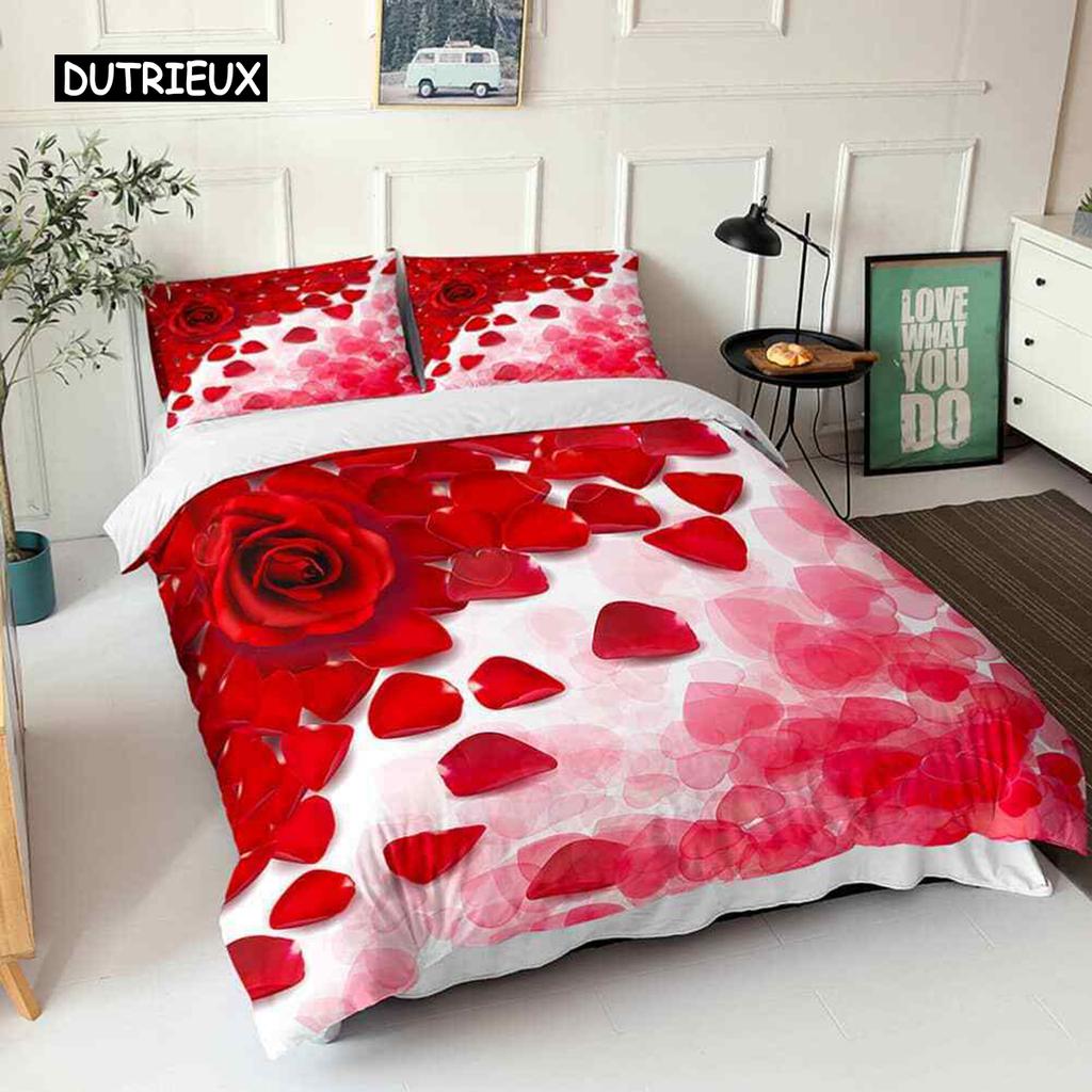 Комплект постельного белья с 3D-розой и сердечками, пододеяльник в скандинавском стиле 150x200, 220x240, пододеяльник размера «king size», наволочка с современным принтом «кошка, волк» и без простыни